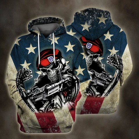 American Paratrooper Skull Halloween Colorful 3D All-Over Print Unisex Hoodie
