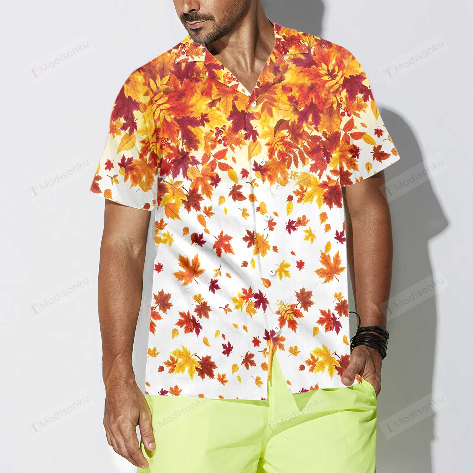 Autumn Leaves On White Thanksgiving Hawaiian Shirt