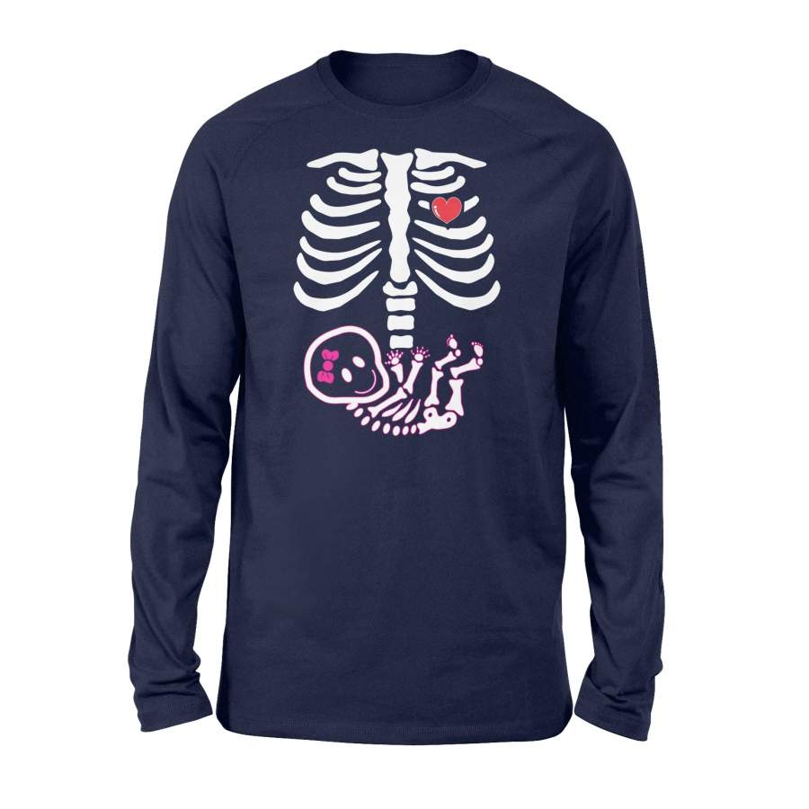 Baby Girl X-Ray Skeleton Pregnancy Halloween Long Sleeve T shirt