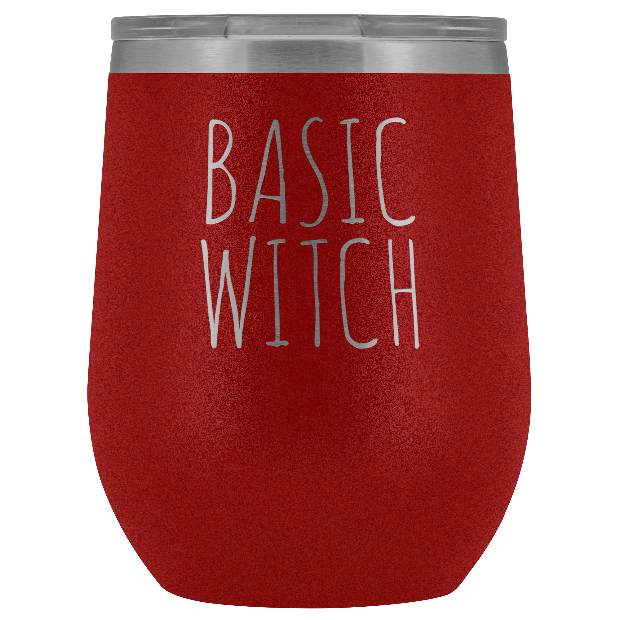 Basic Witch Halloween Wine Tumbler Funny Fall Gifts For Friends Stemless Insulated Hot Cold Bpa Free 12Oz Travel Sippy Cup
