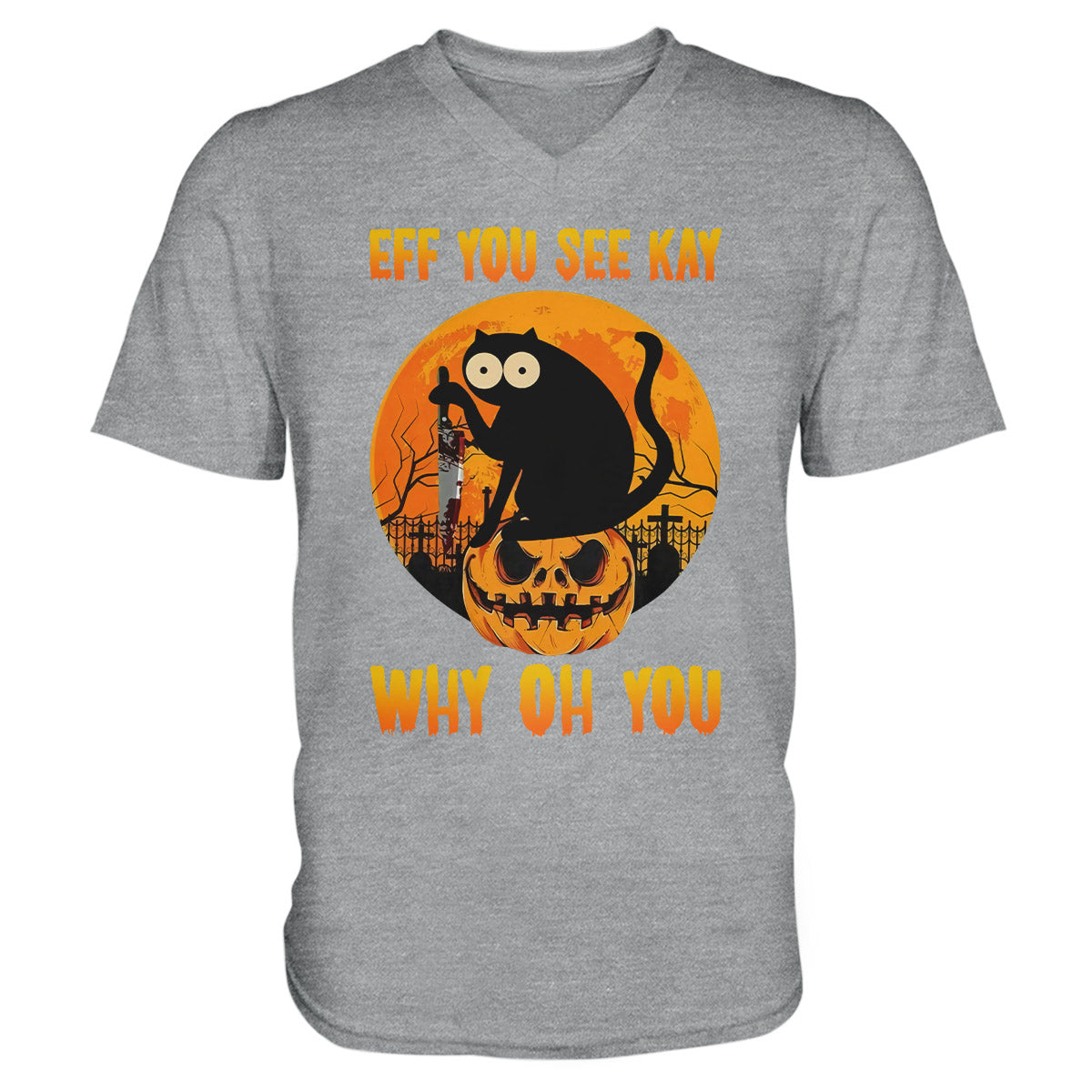 Black Cat Halloween Eff You See Kay Why Oh You Halloween Shirt, Black Cat Halloween Unisex V-Neck T-Shirt