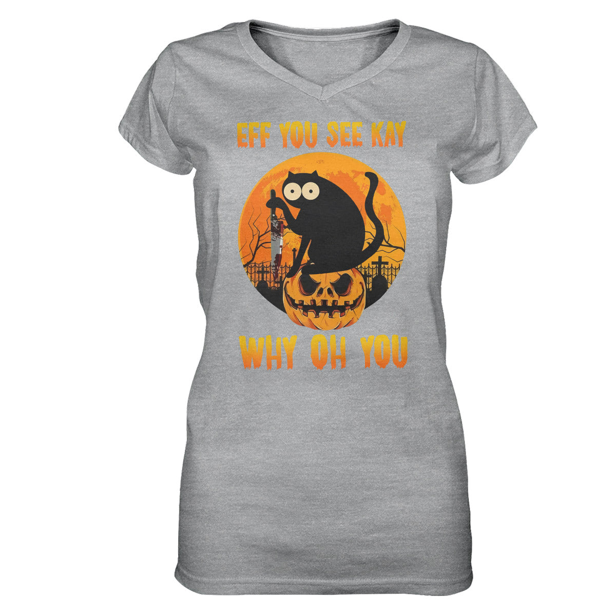 Black Cat Halloween Eff You See Kay Why Oh You Halloween Shirt, Black Cat Halloween Women V-Neck T-Shirt