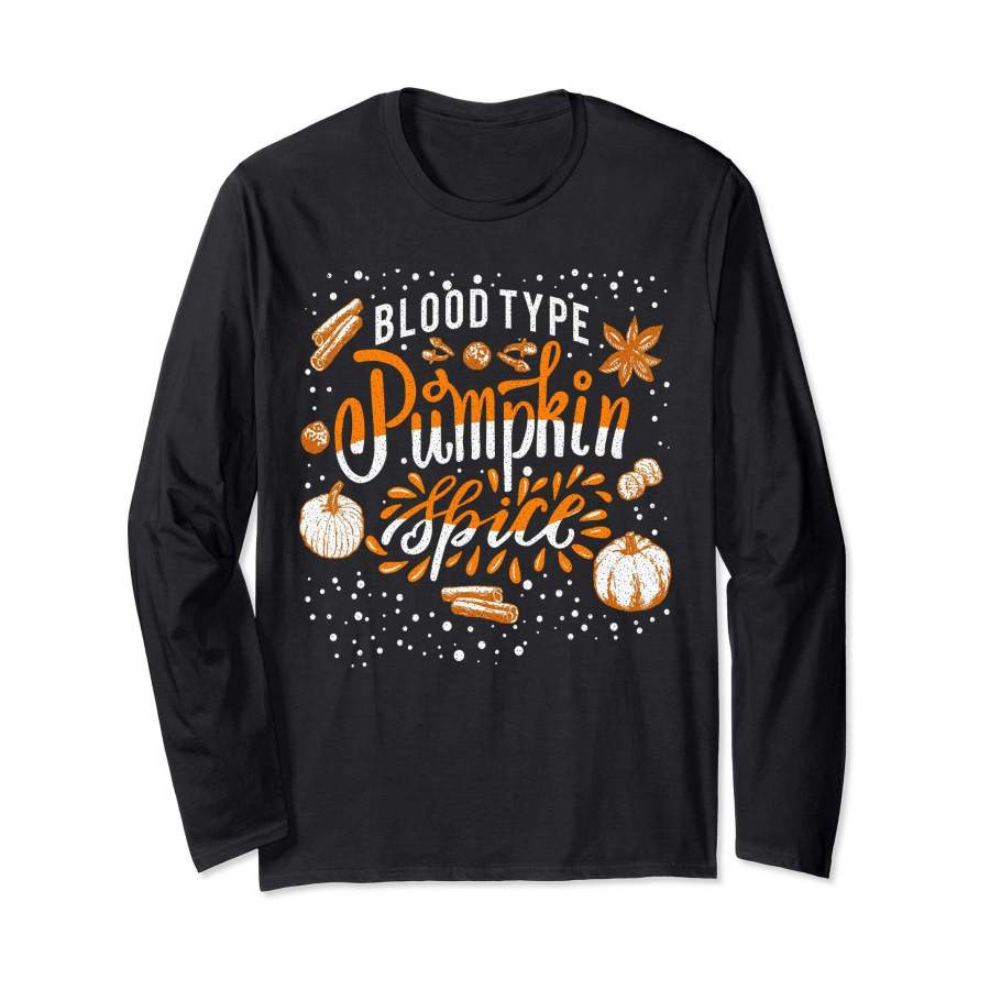 Blood Type Pumpkin Spice Long Sleeve T-shirt Halloween Gift