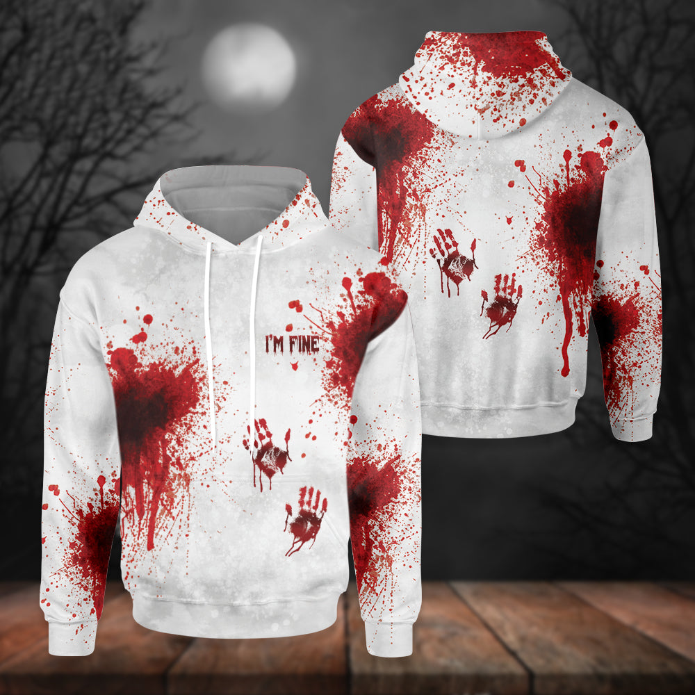 Bloody Halloween Costume All Over Print Hoodie, Scary Killer Horror Graphic Hoodie
