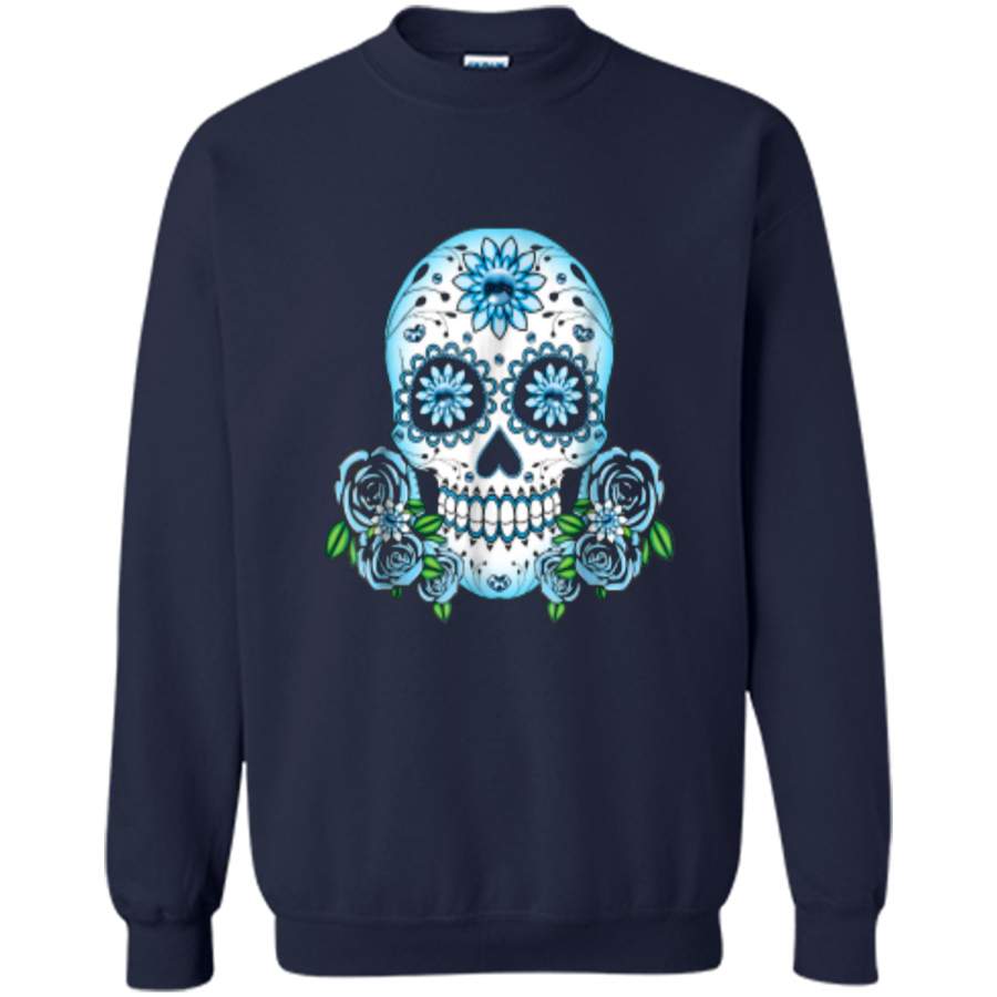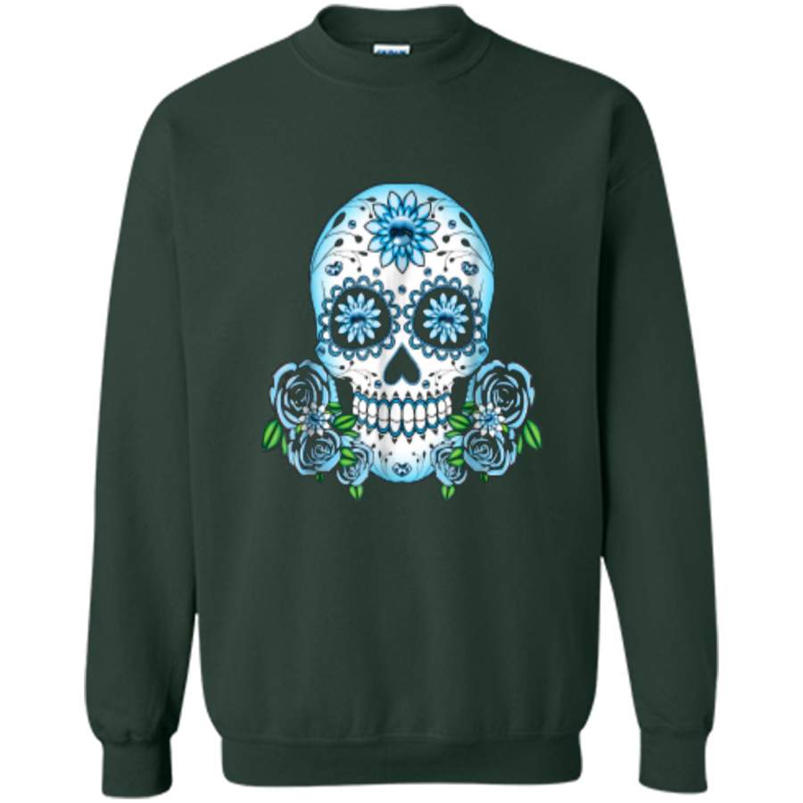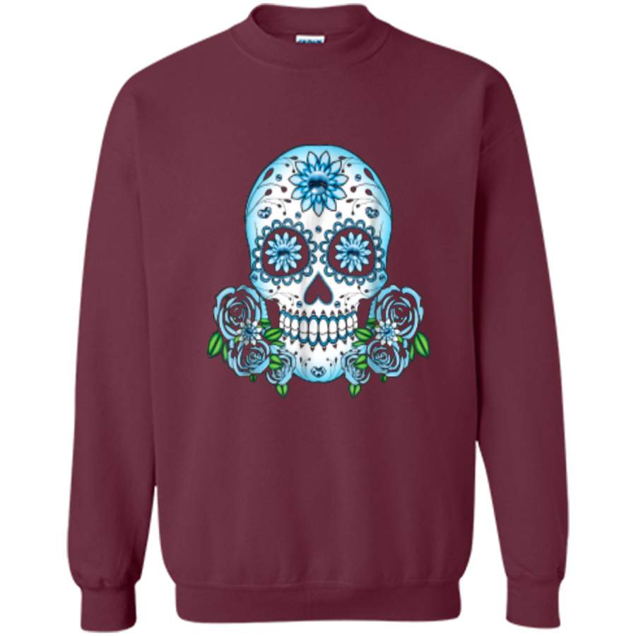 Blue Flowers Sugar Skull Day Of The Dead Halloween Printed Crewneck Pullover Sweatshirt