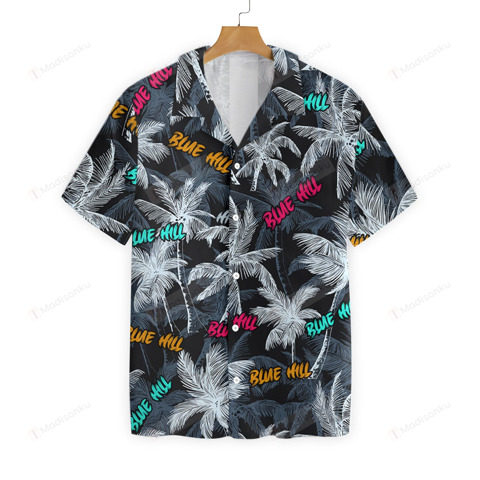 Blue Hill Beach Coconut Tree Seamless Hawaiian Shirt