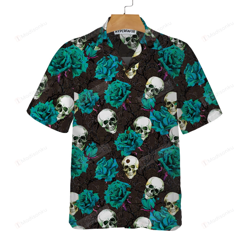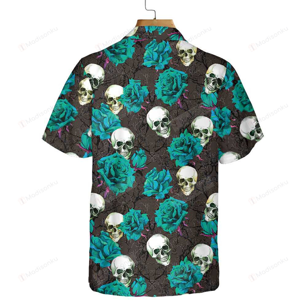 Blue Roses And Gothic Skull Hawaiian Shirt