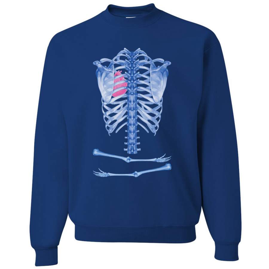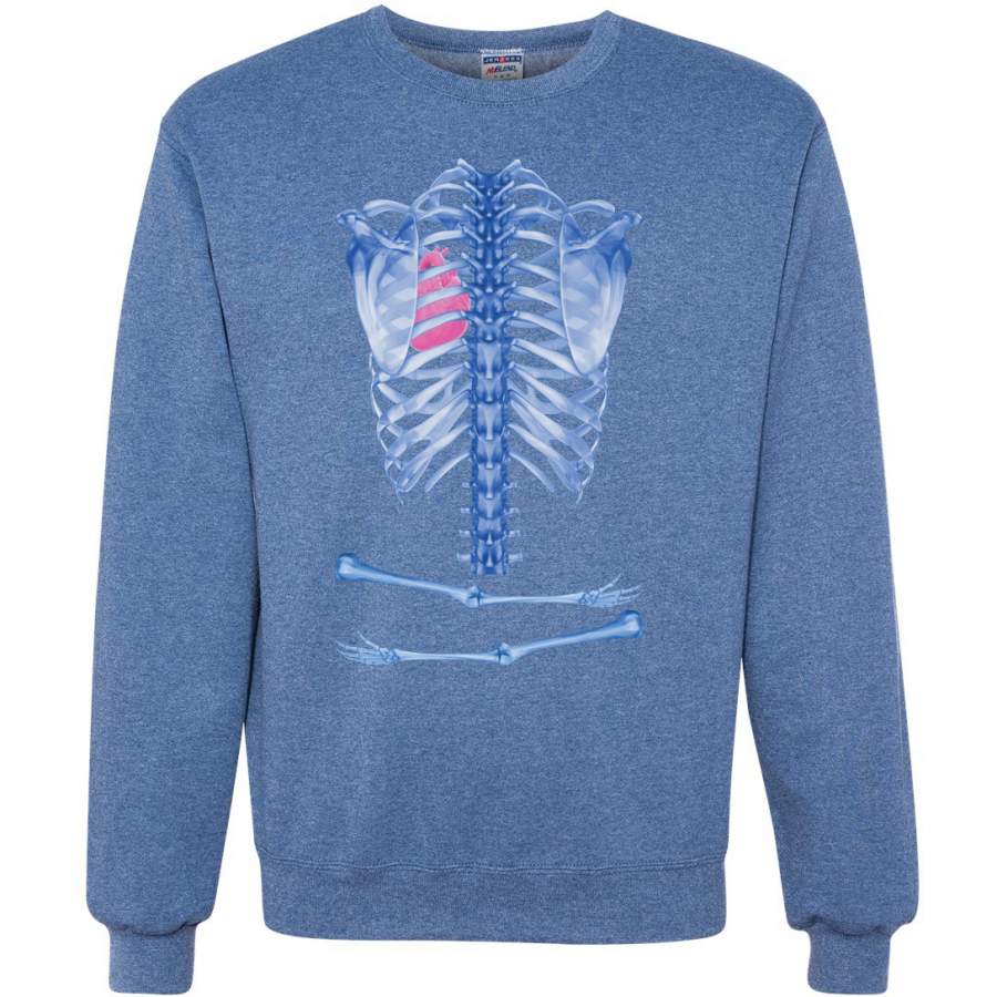 Blue Skeleton Bones Halloween Crewneck Graphic Sweatshirt