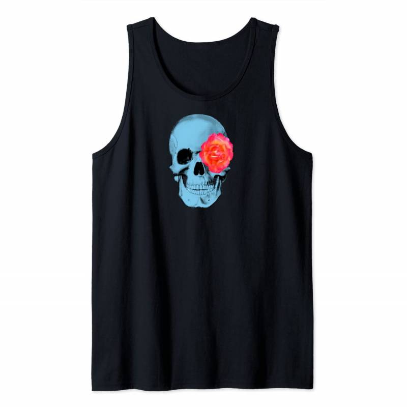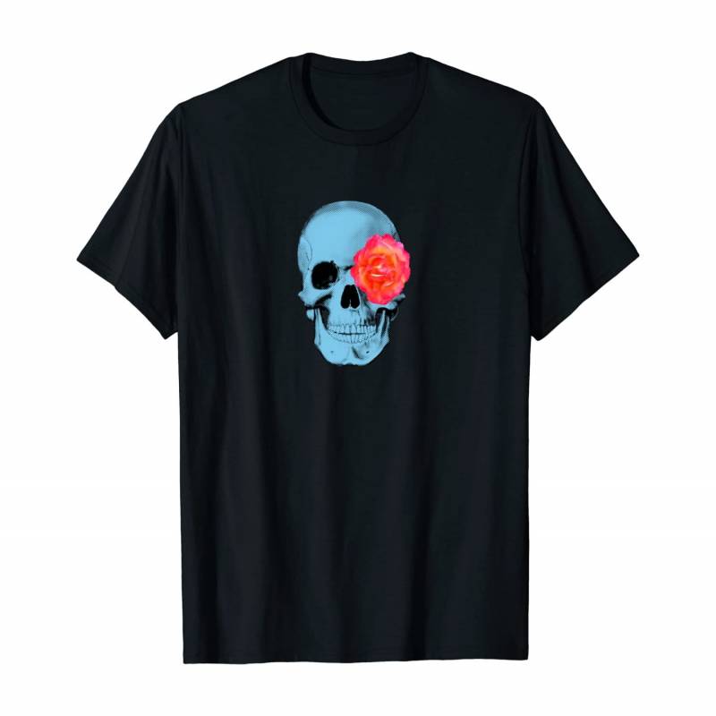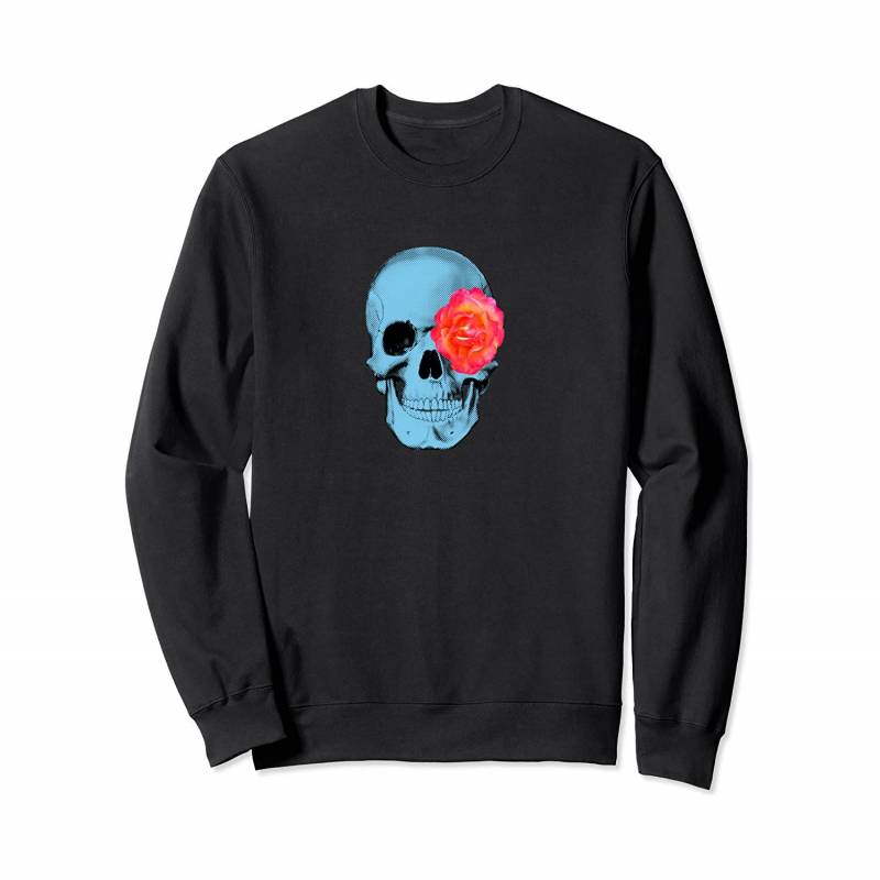 Blue Skull with Red Rose – Halloween Graphic Pullover Hoodie, T-Shirt, Sweatshirt, Tank Top, Racerback, Dolman