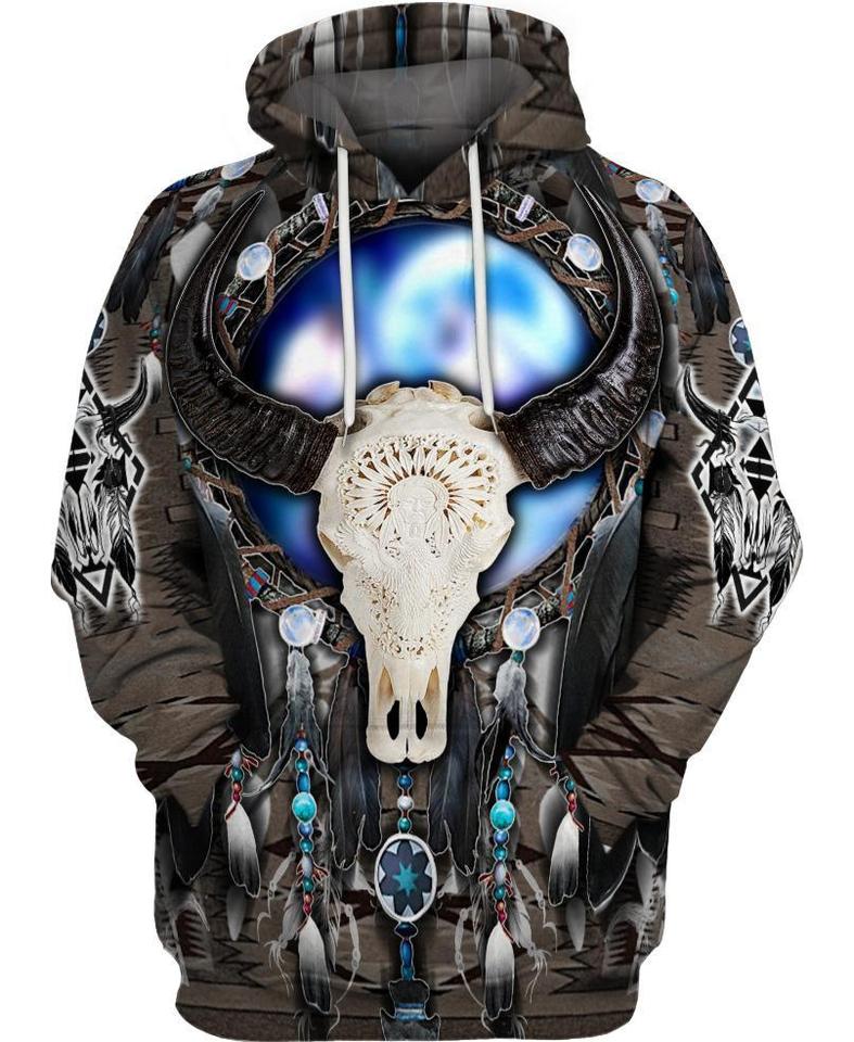 Blur Bison Skull Halloween Grey 3D All-Over Print Unisex Hoodie