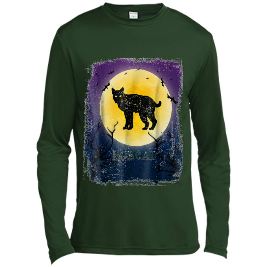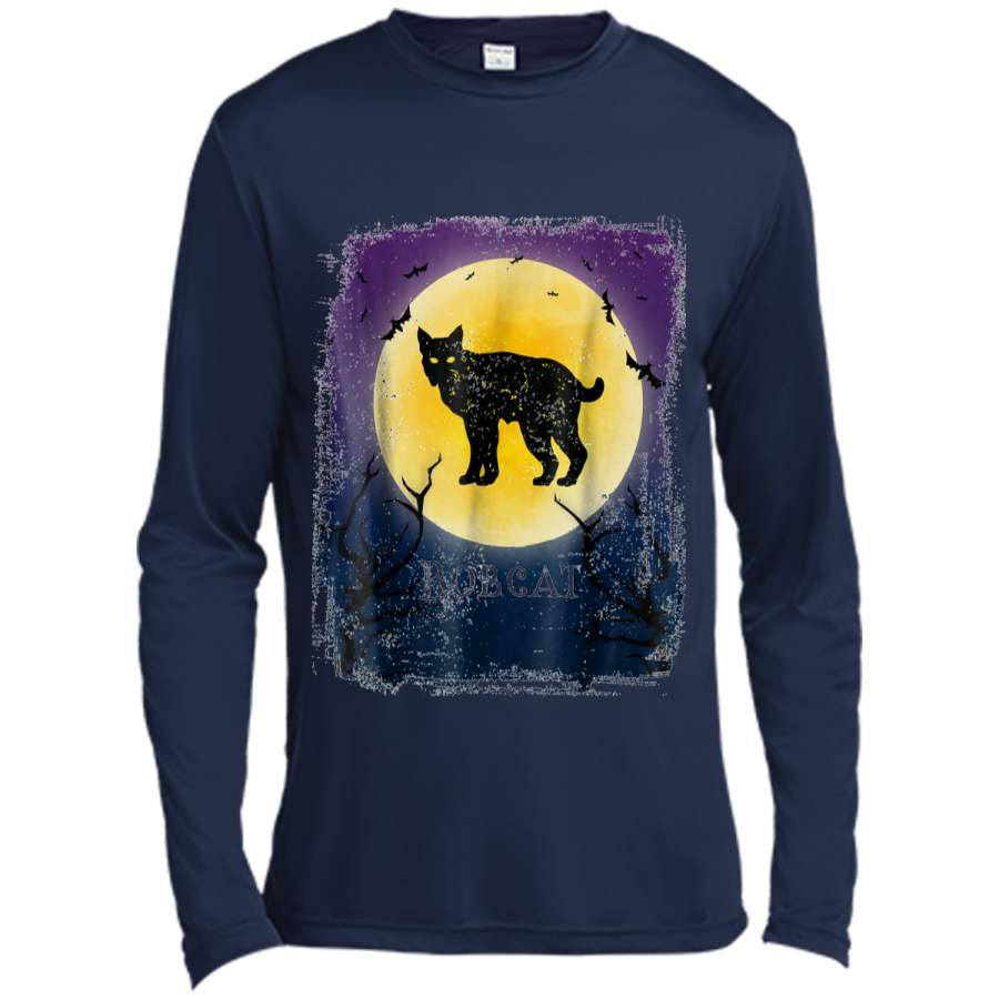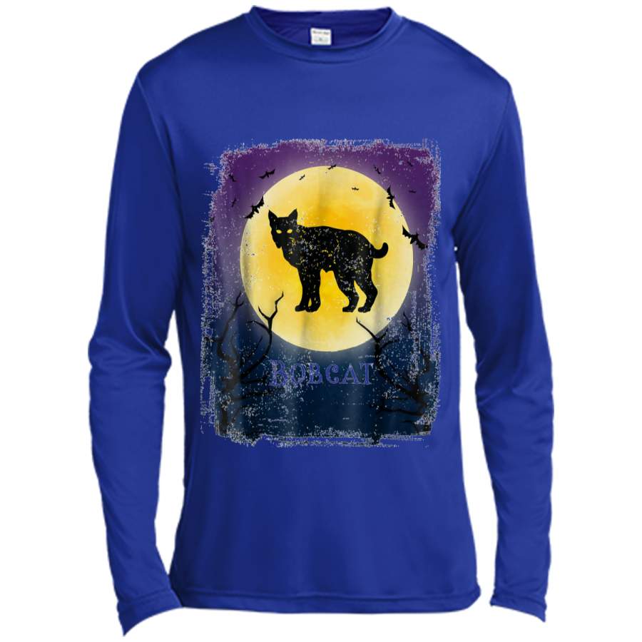 Bobcat Lynx Halloween Vintage Moon Bats Tee Long Sleeve Moisture Absorbing Shirt