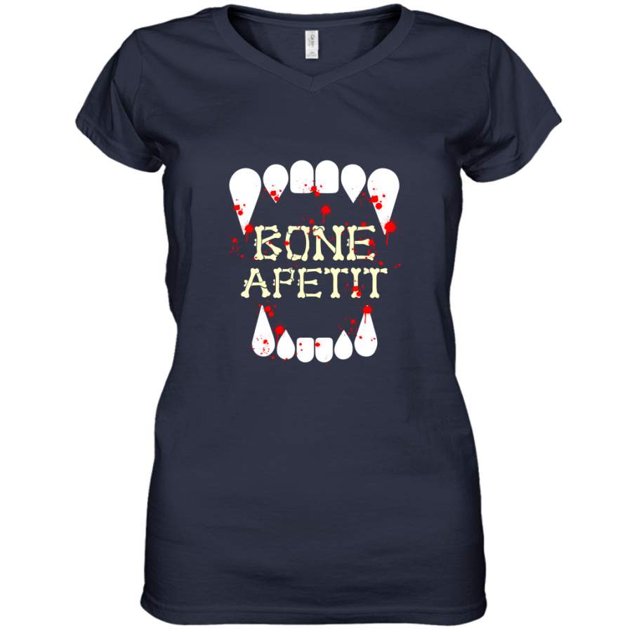 Bones Appetite Vampire Teeth Halloween shirt Women’s V-Neck T-Shirt