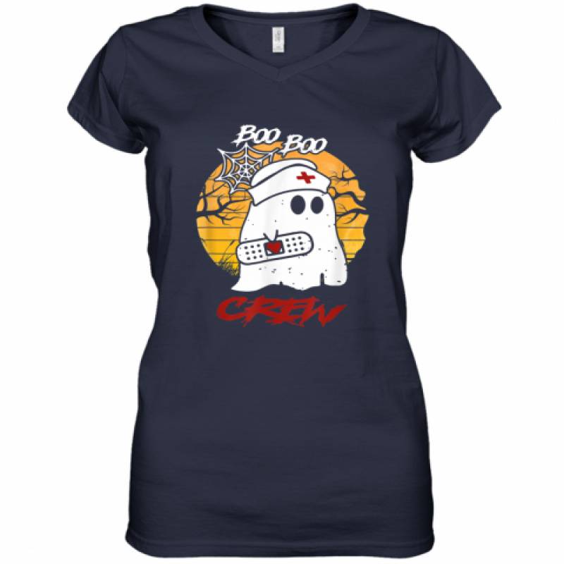 Boo Boo Crew Nurse Ghost Shirt Halloween Costume Women’s V-Neck T-Shirt