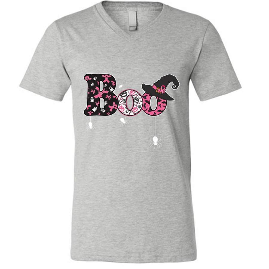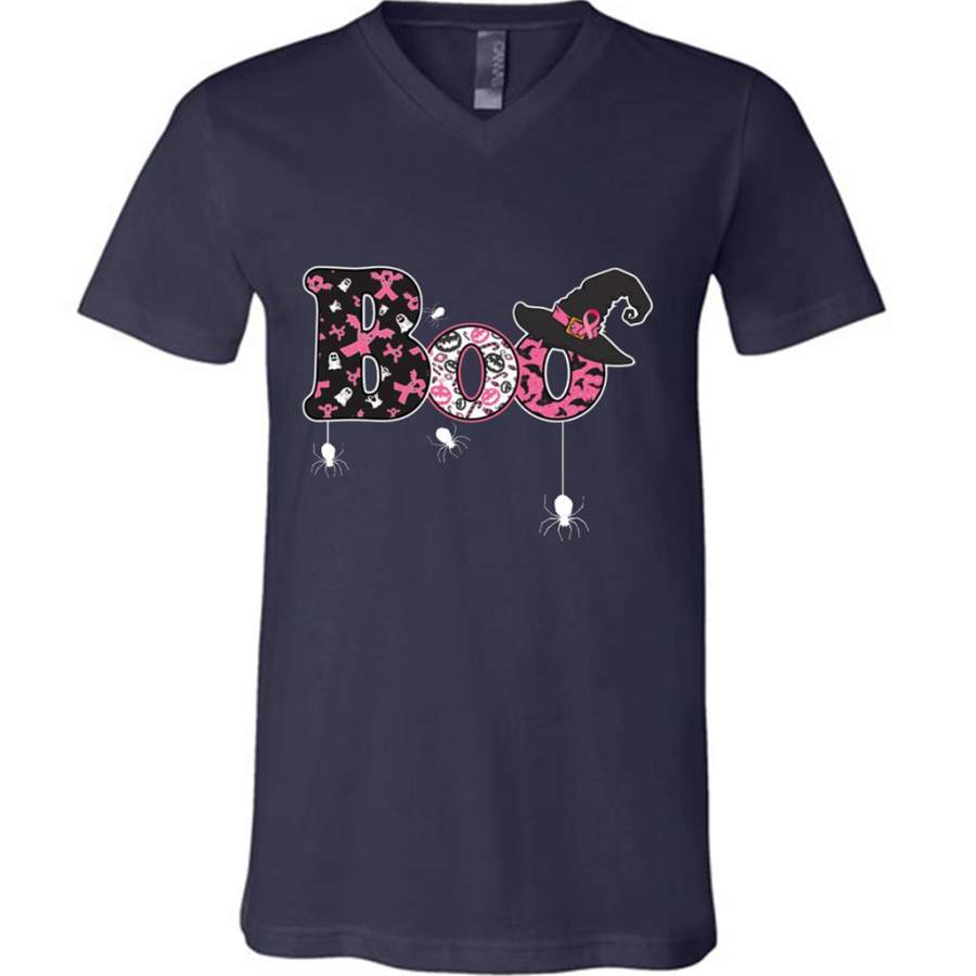 Boo Breast Cancer Halloween Gift – Canvas Unisex V-Neck Shirt