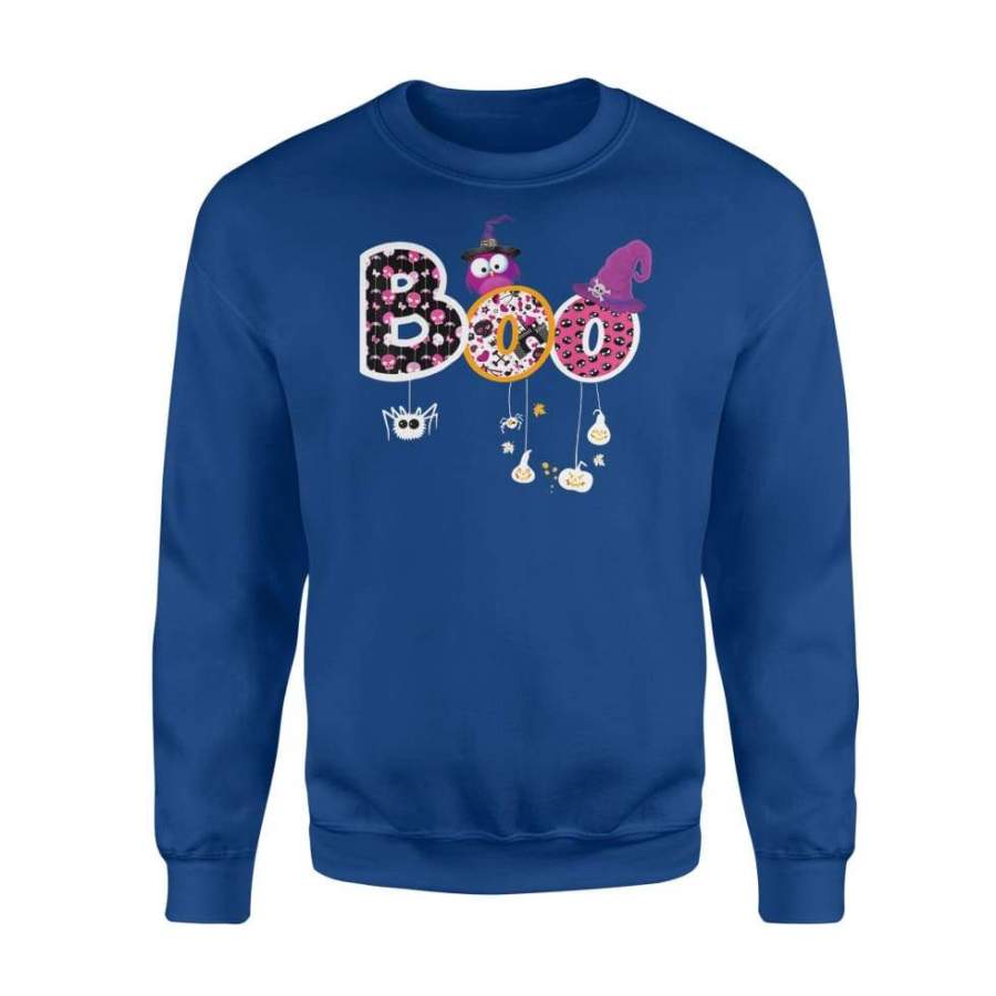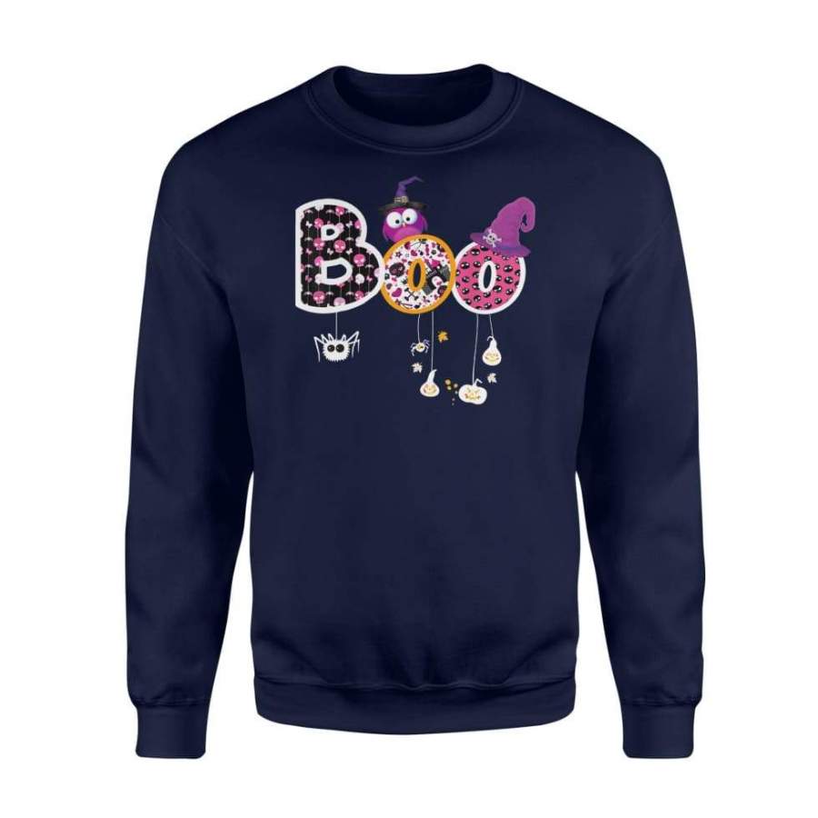Boo Halloween Costume Spiders, Ghosts, Pumkin & Witch Hat Halloween Costume – Standard Fleece Sweatshirt
