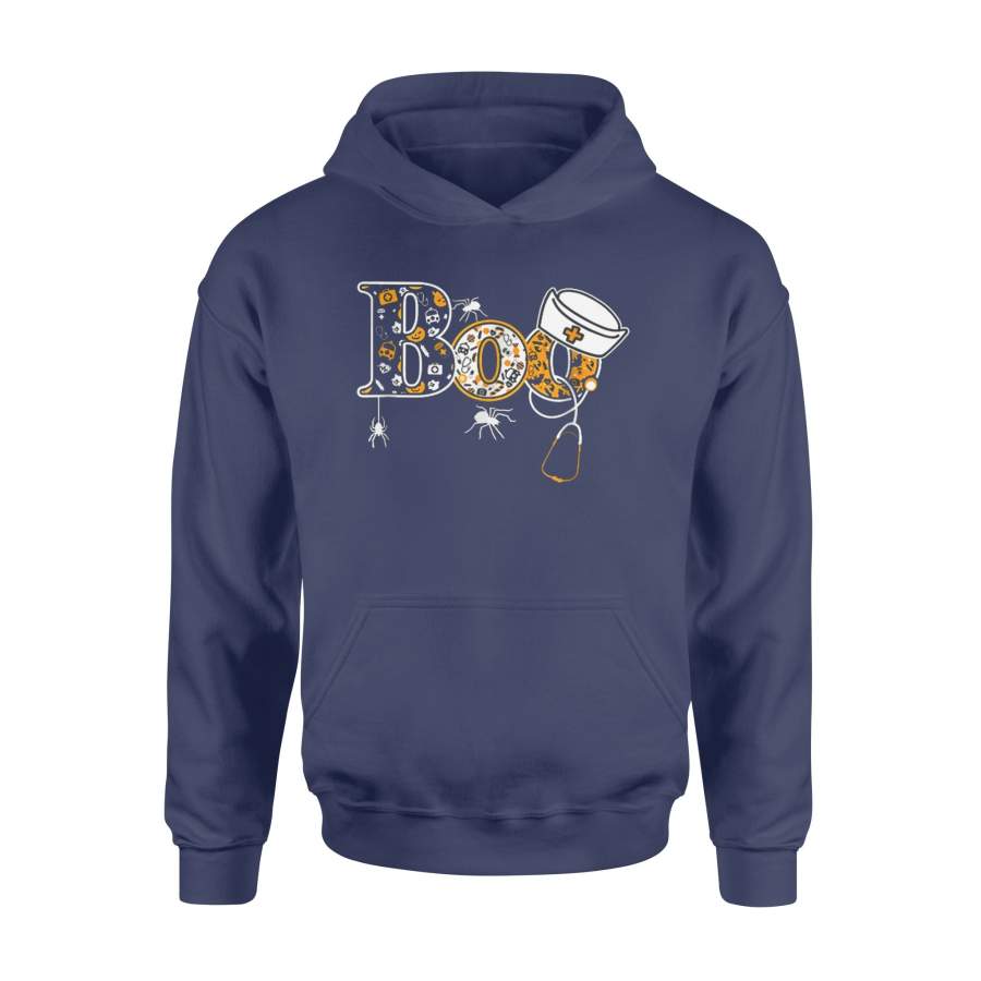 Boo halloween shirt with spiders and witch nurse hat – Standard Hoodie