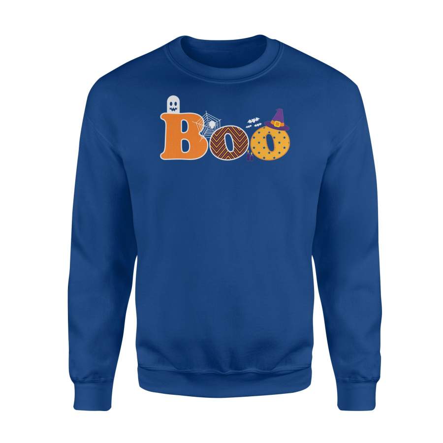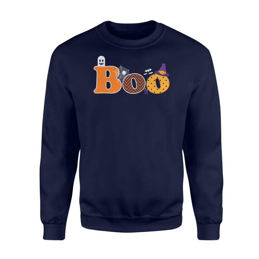 Boo Halloween With Ghost, Spider, Bat and Witch Hat – Standard Fleece Sweatshirt