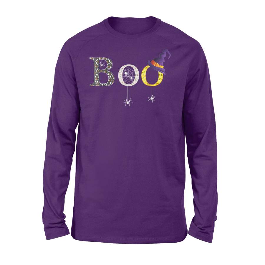 Boo Halloween With Spiders And Witch Hat Long Sleeve T-Shirt