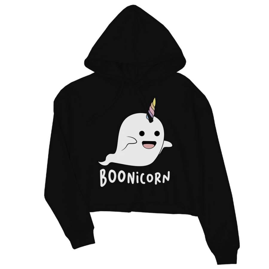Boonicorn Cute Halloween Costume Ghost Unicorn Womens Crop Hoodie