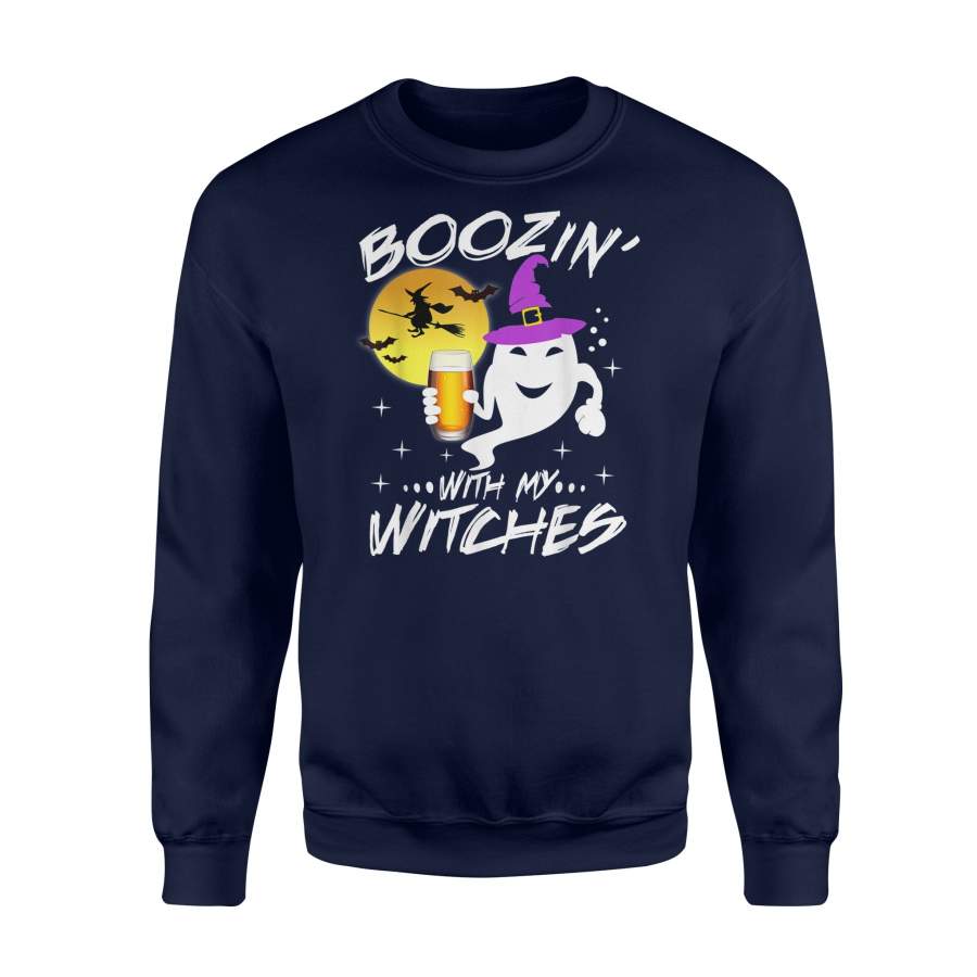 Boozin With My Witches Halloween Boo Ghost Witch Pun – Standard Fleece Sweatshirt