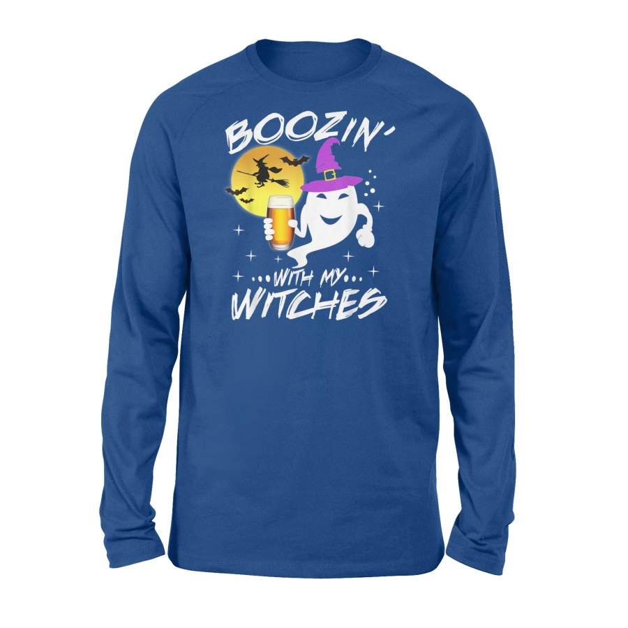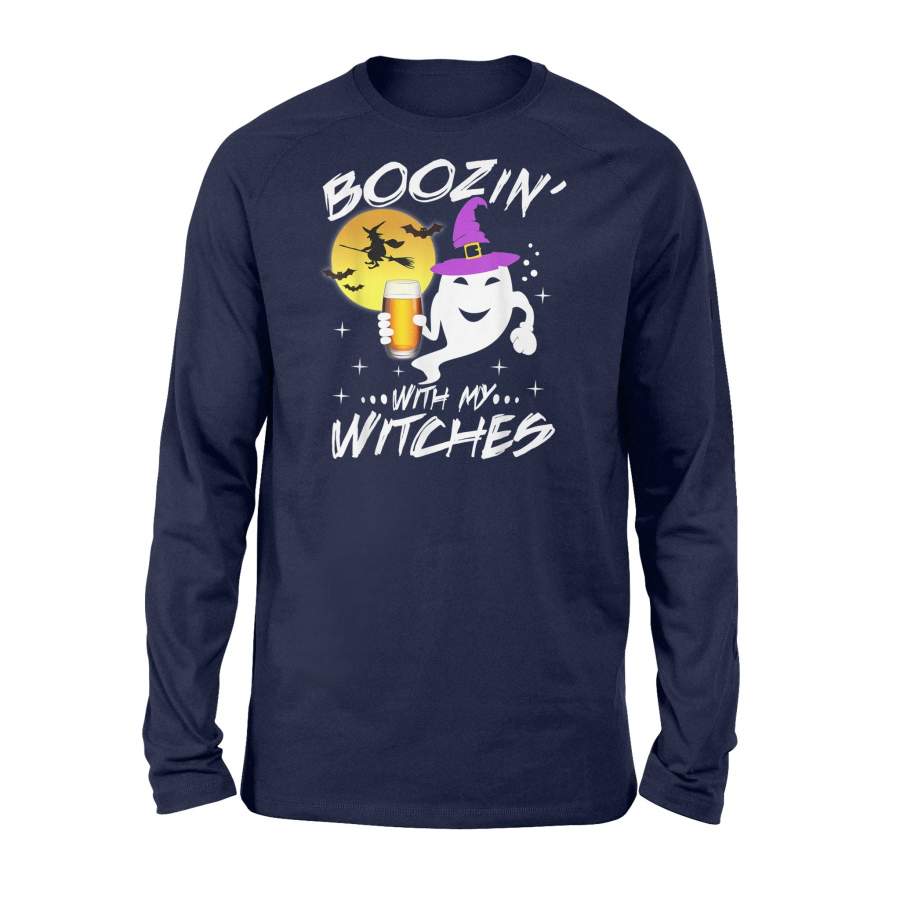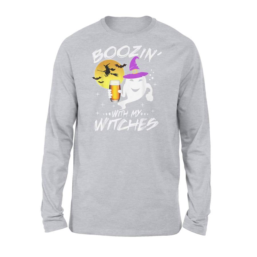 Boozin With My Witches Halloween Boo Ghost Witch Pun – Standard Long Sleeve