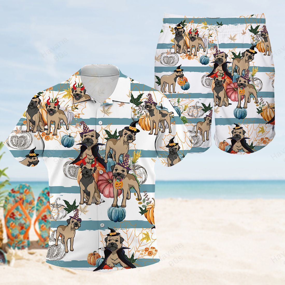 Border Terrier Hawaiian Shirt Halloween Pumpkin Retro