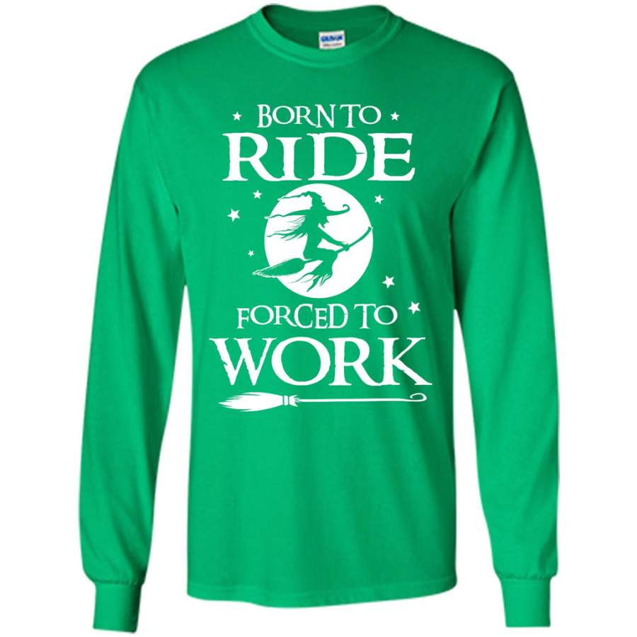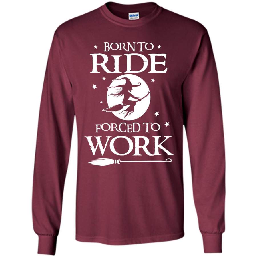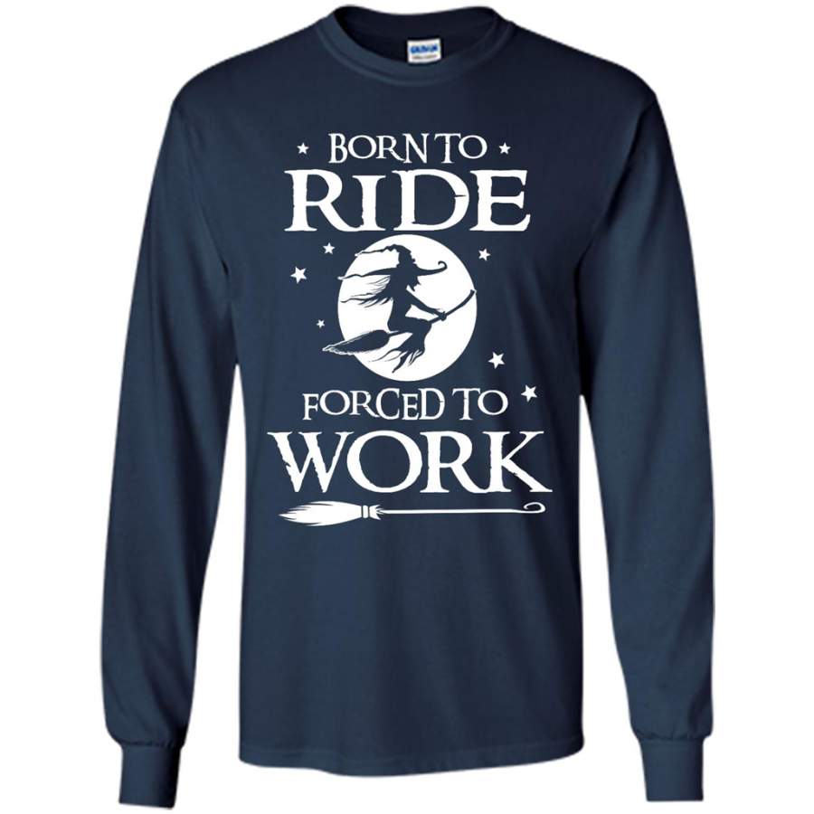 Born to Ride Broom, Forced to Work, Witch in Halloween 02 – Gildan Long Sleeve Shirt