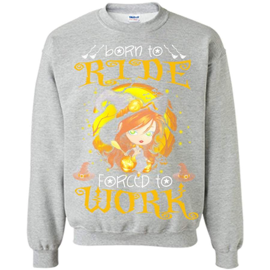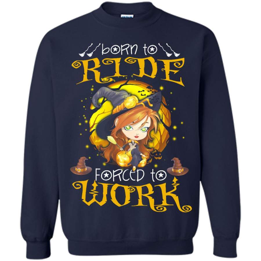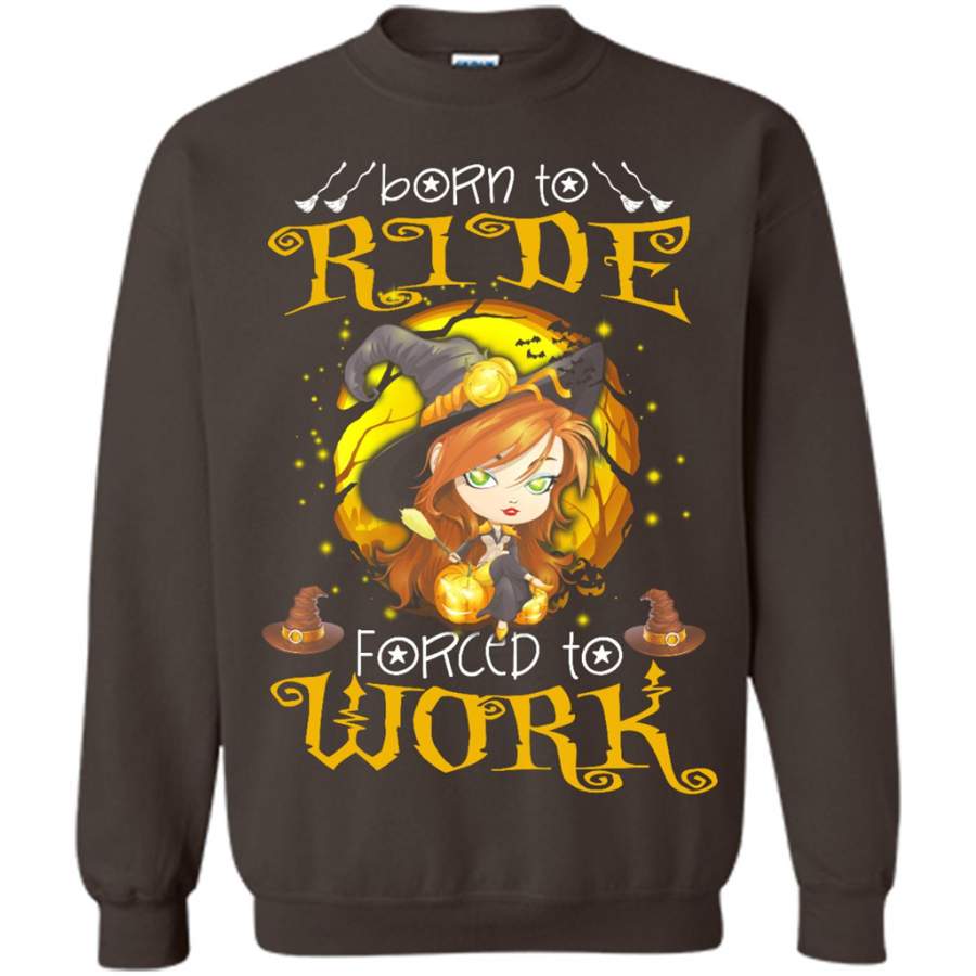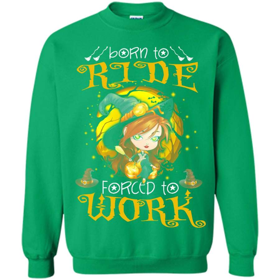 Born to Ride Broom, Forced to Work, Witch in Halloween 04 – Gildan Crewneck Sweatshirt