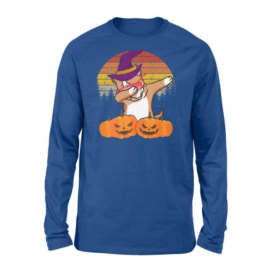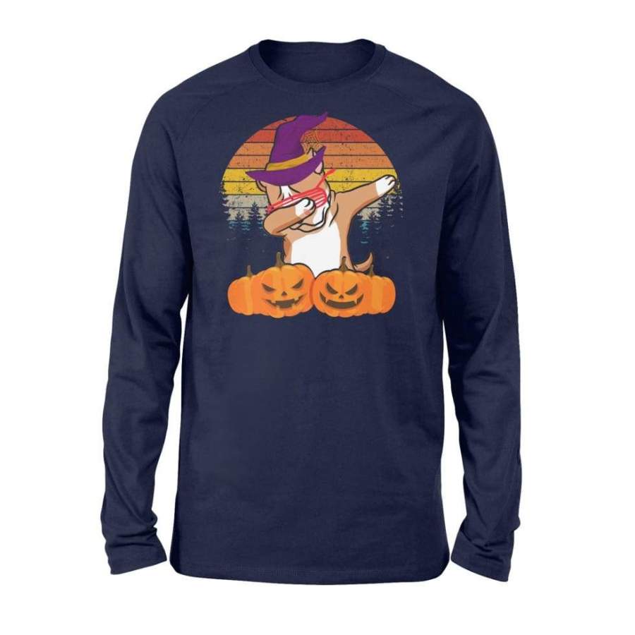Boston Terrier Dog Dabbing Retro Sunset With Witch Hat Halloween Costume – Standard Long Sleeve