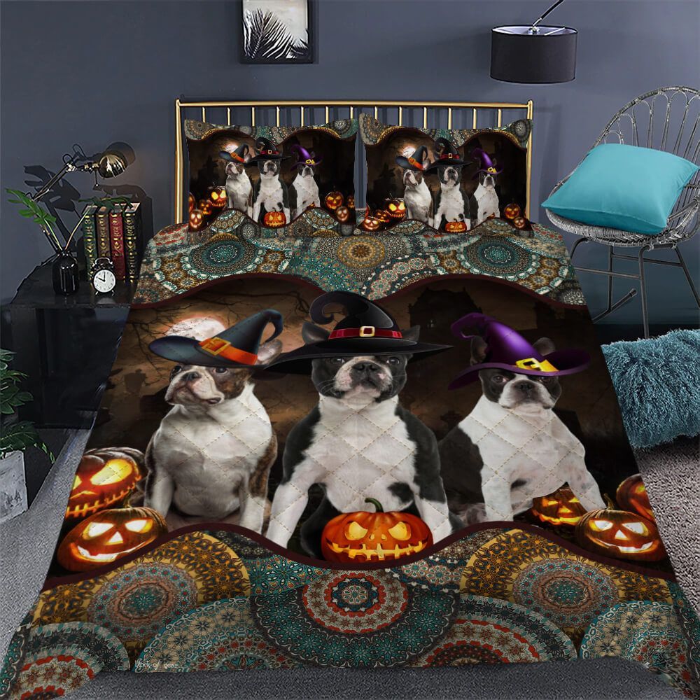 Boston Terrier Halloween Pumpkin Quilt Bed Set