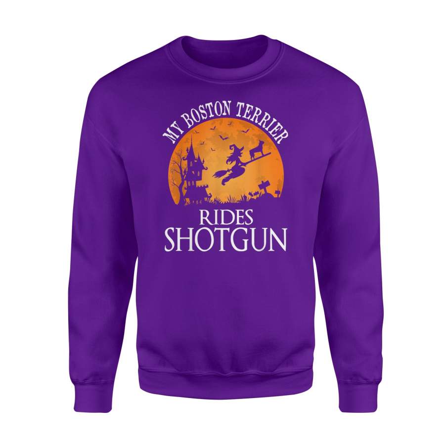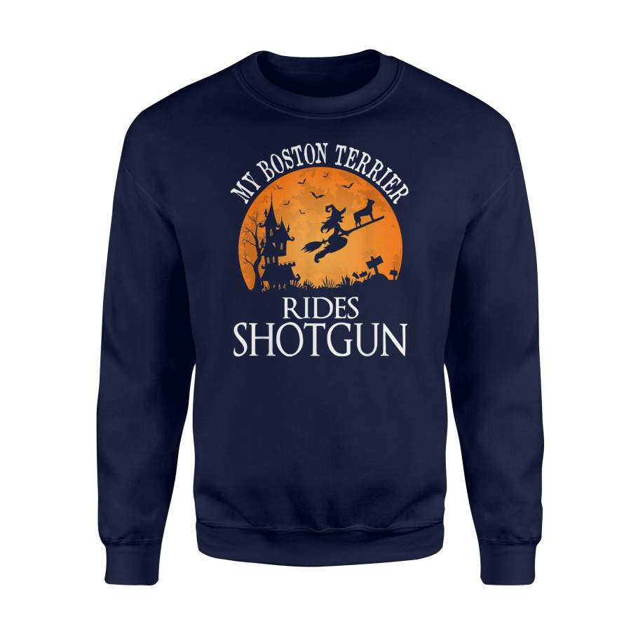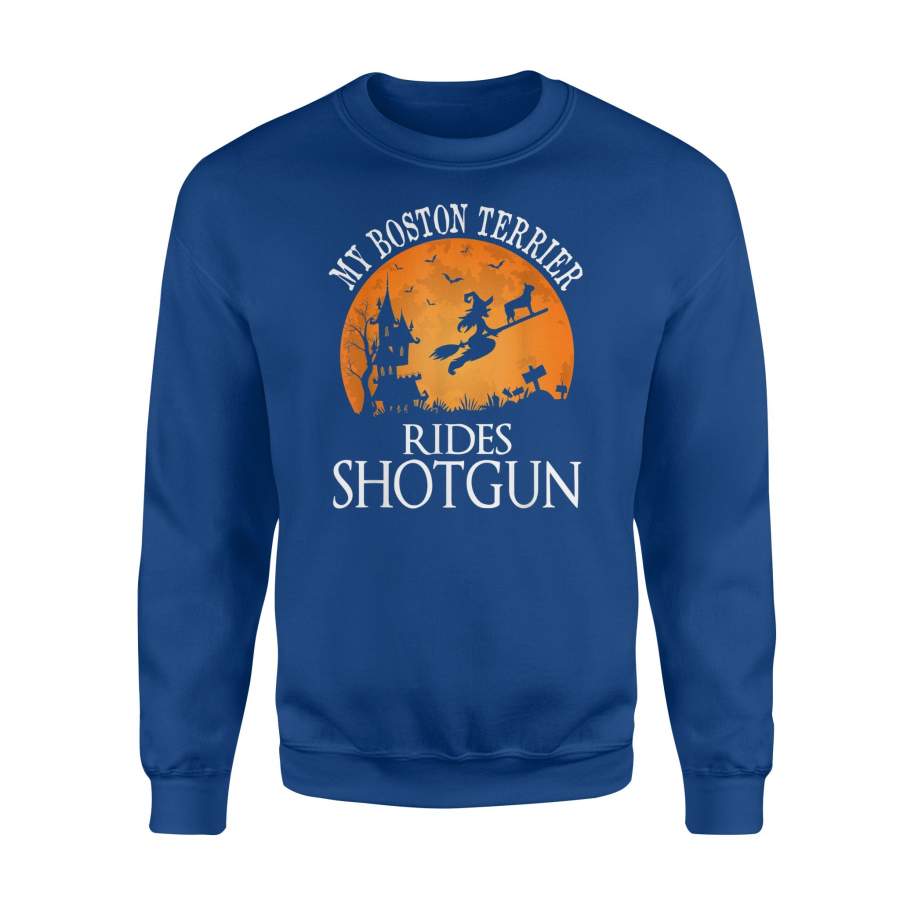 Boston Terrier Rides Shotgun Dog Lover Halloween Party Sweatshirt
