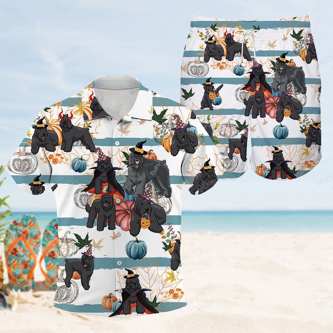 Bouvier des Flandres Hawaiian Shirt Halloween Pumpkin Retro