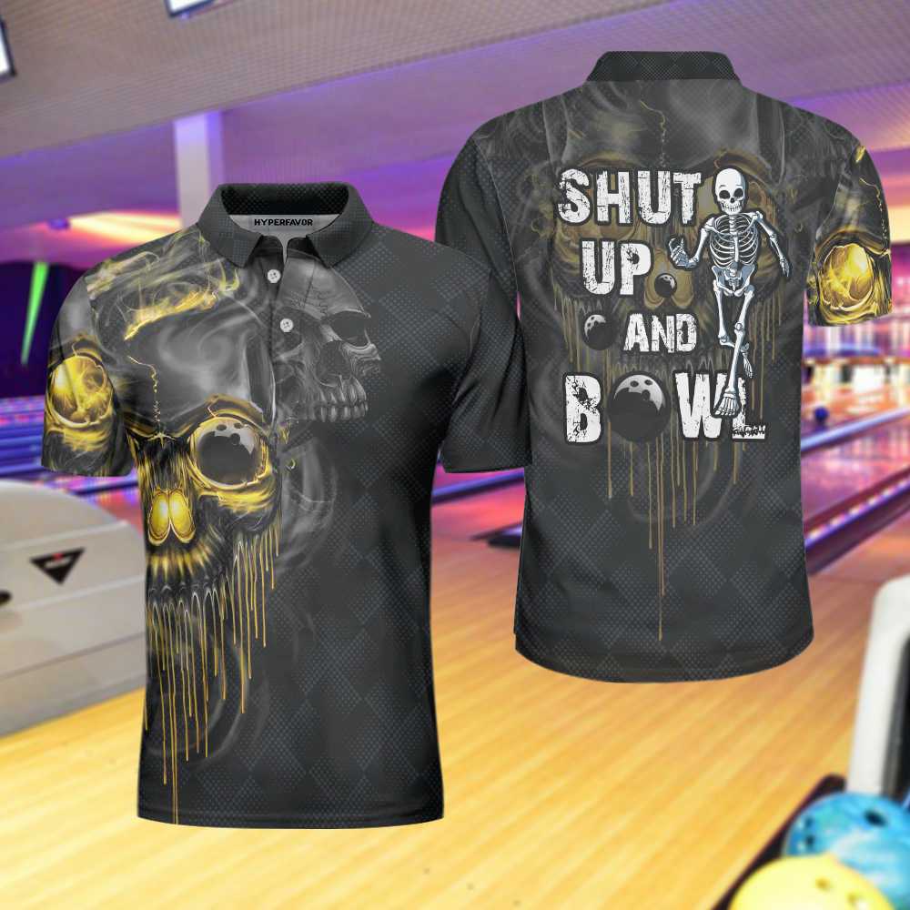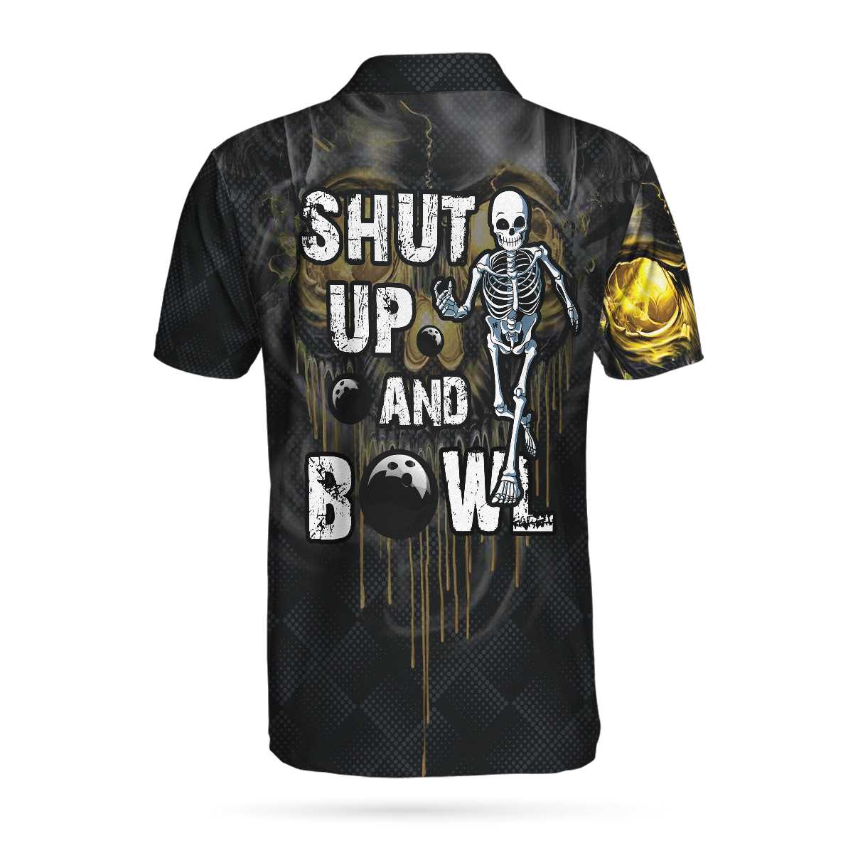 Bowling Shut Up Polo Shirt, Scary Halloween Gift Idea For Male Bowlers, Skull Bowling Polo Shirt