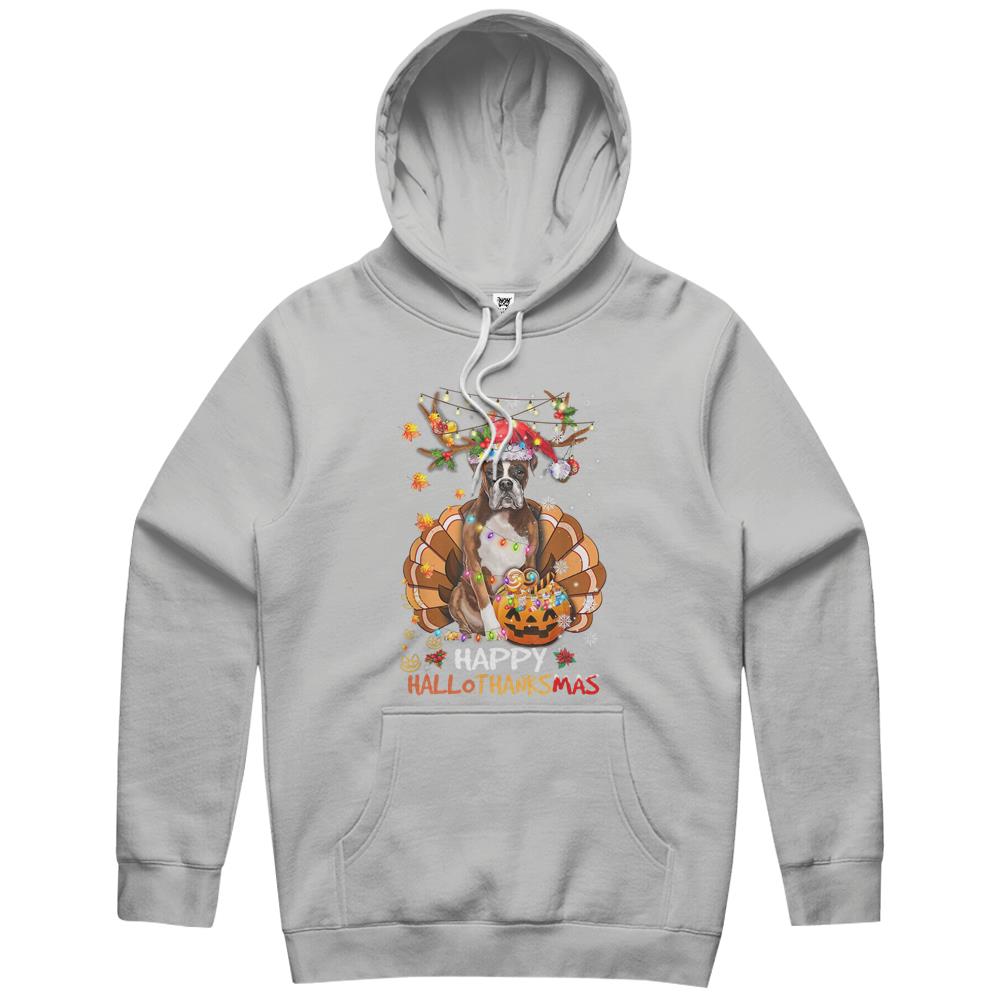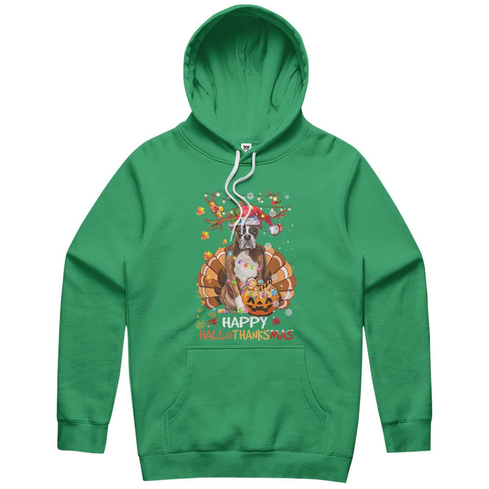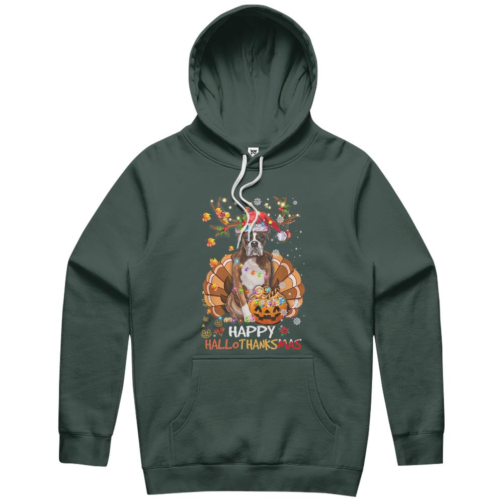 Boxer Dog Happy Hallothanksmas Halloween Thanksgiving Xmas Hoodie