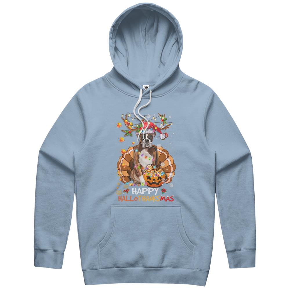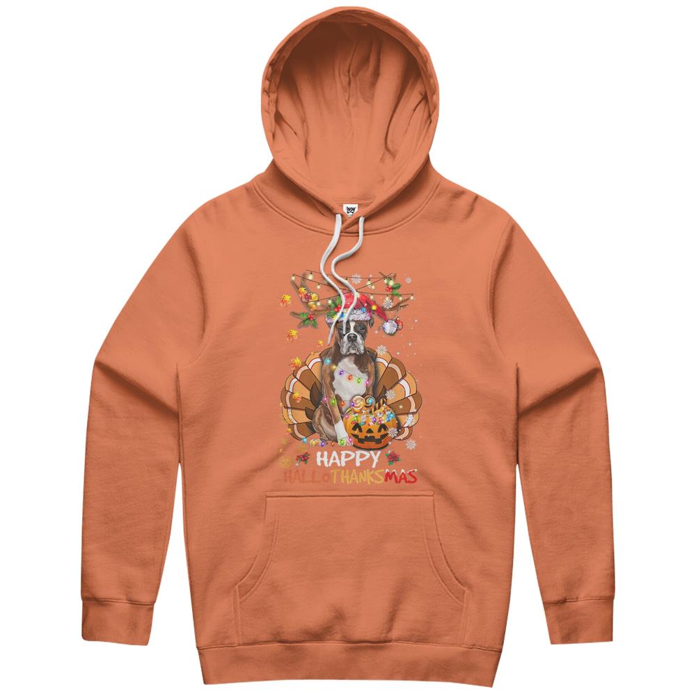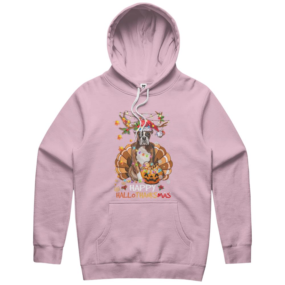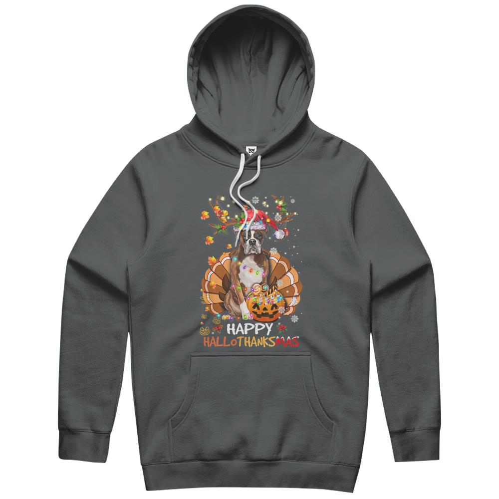 Boxer Dog Happy Hallothanksmas Halloween Thanksgiving Xmas Hoodie
