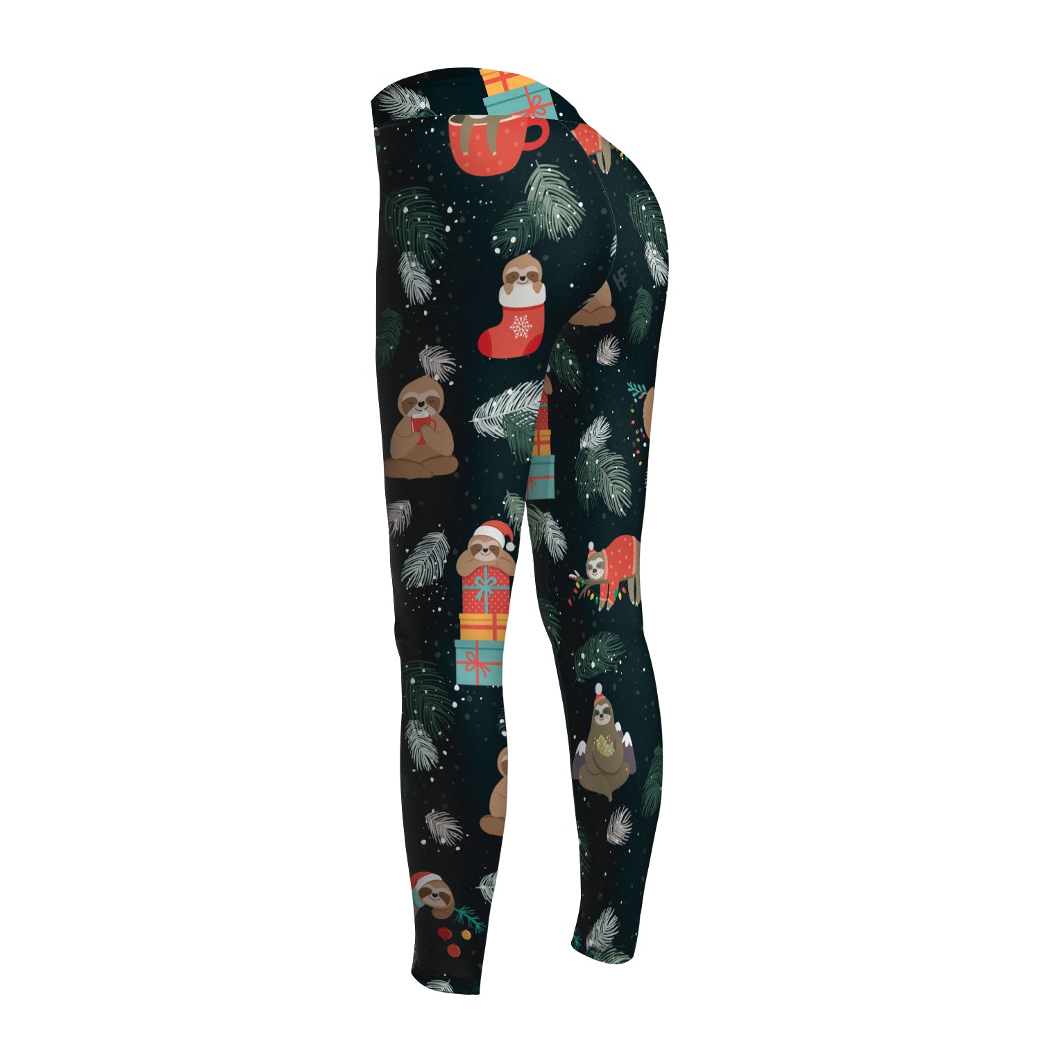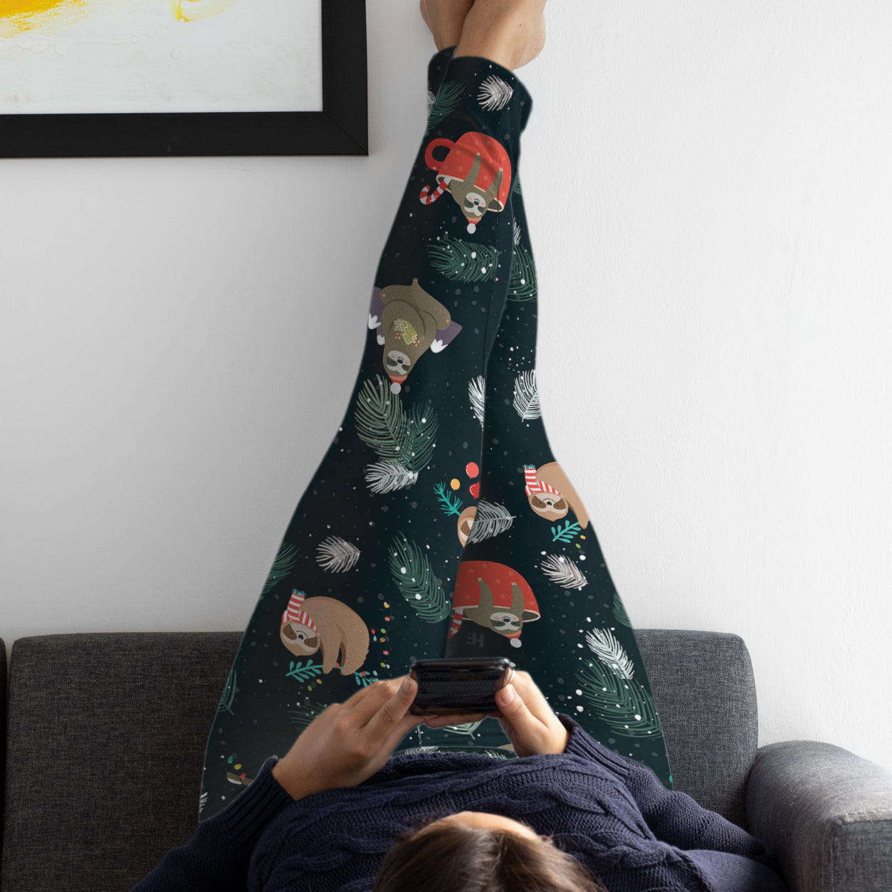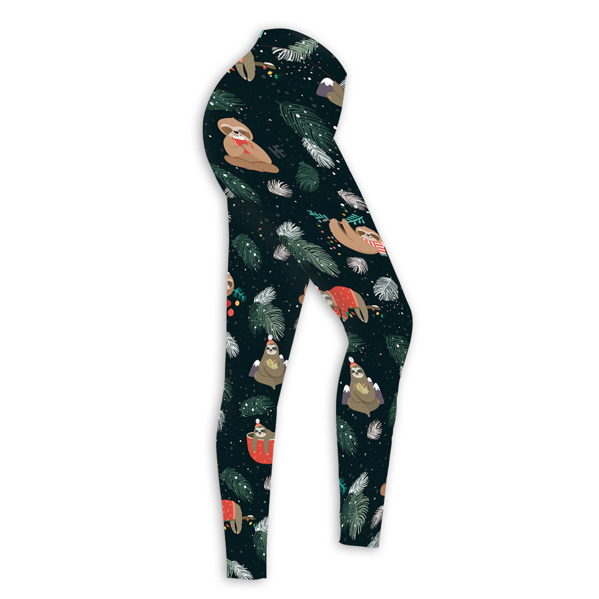 Bright Christmas Sloth All Over Print Leggings, Sloth Christmas Leggings For Women, Sloth Christmas Gift