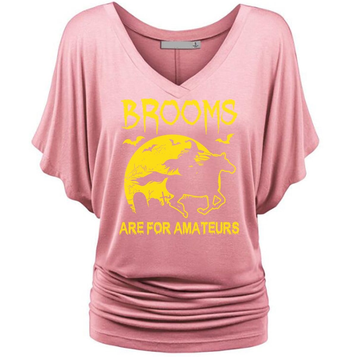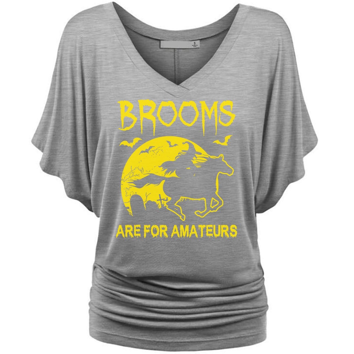 Brooms Are For Amateurs Halloween Horse Riding Batwing V-Neck Shirt