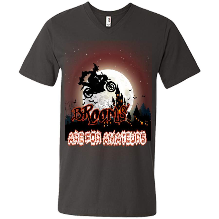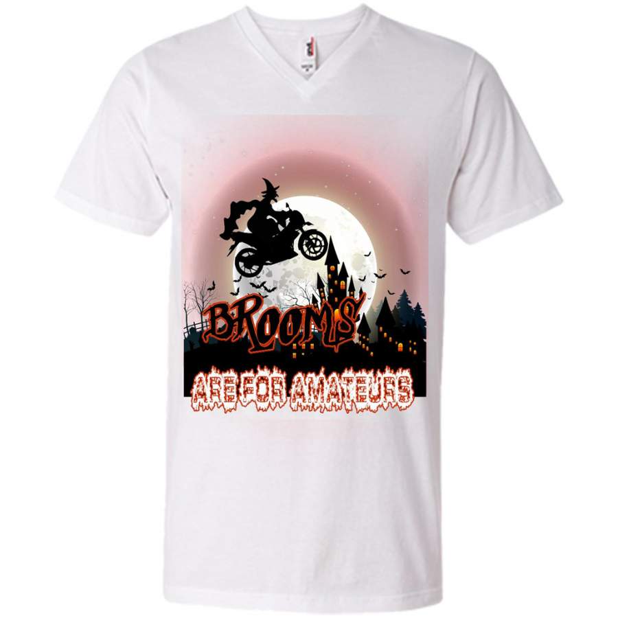 Brooms Are For Amateurs – Witch – Motorbike Lover – Halloween – Canvas Unisex V-Neck Shirt