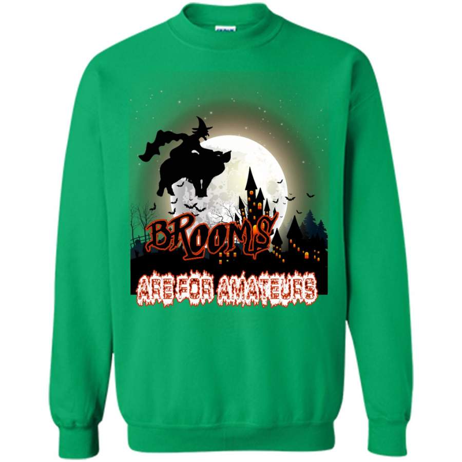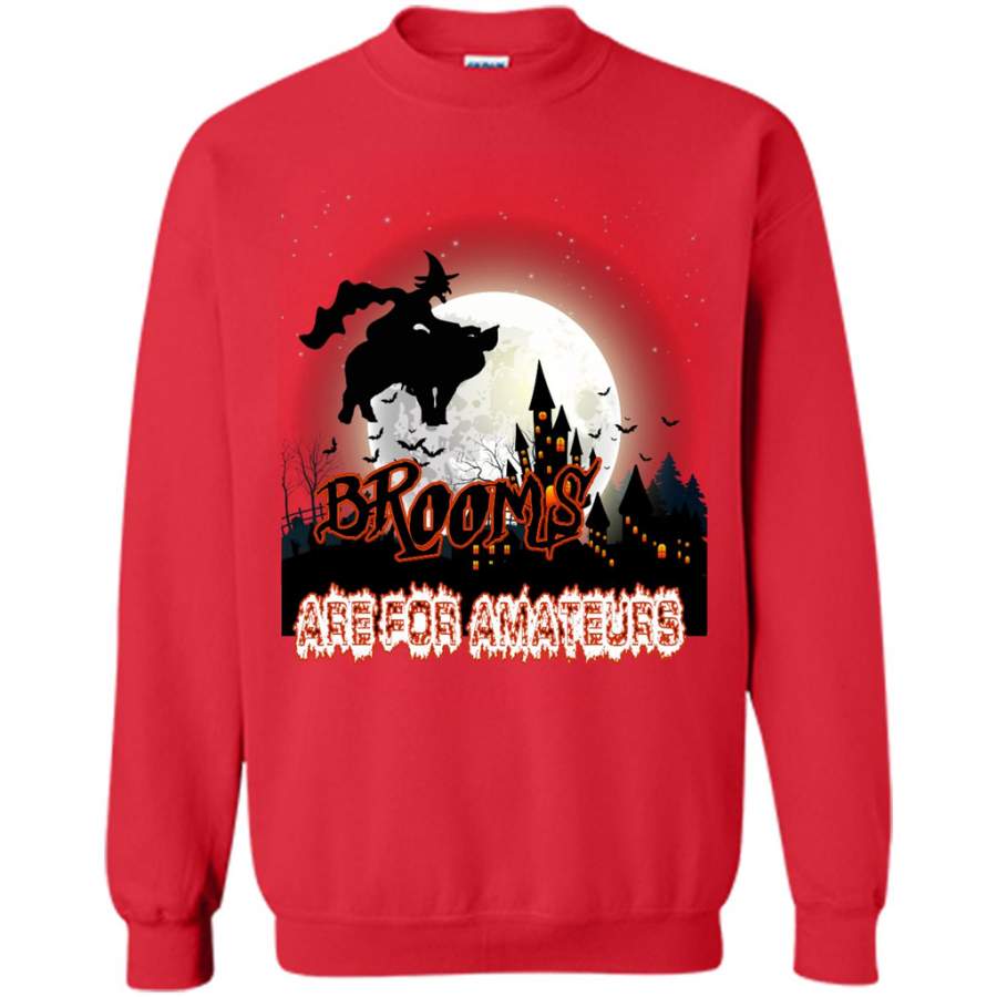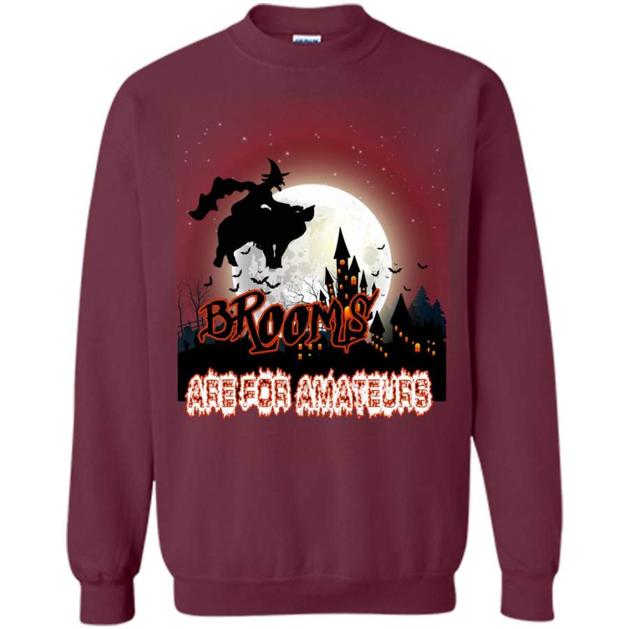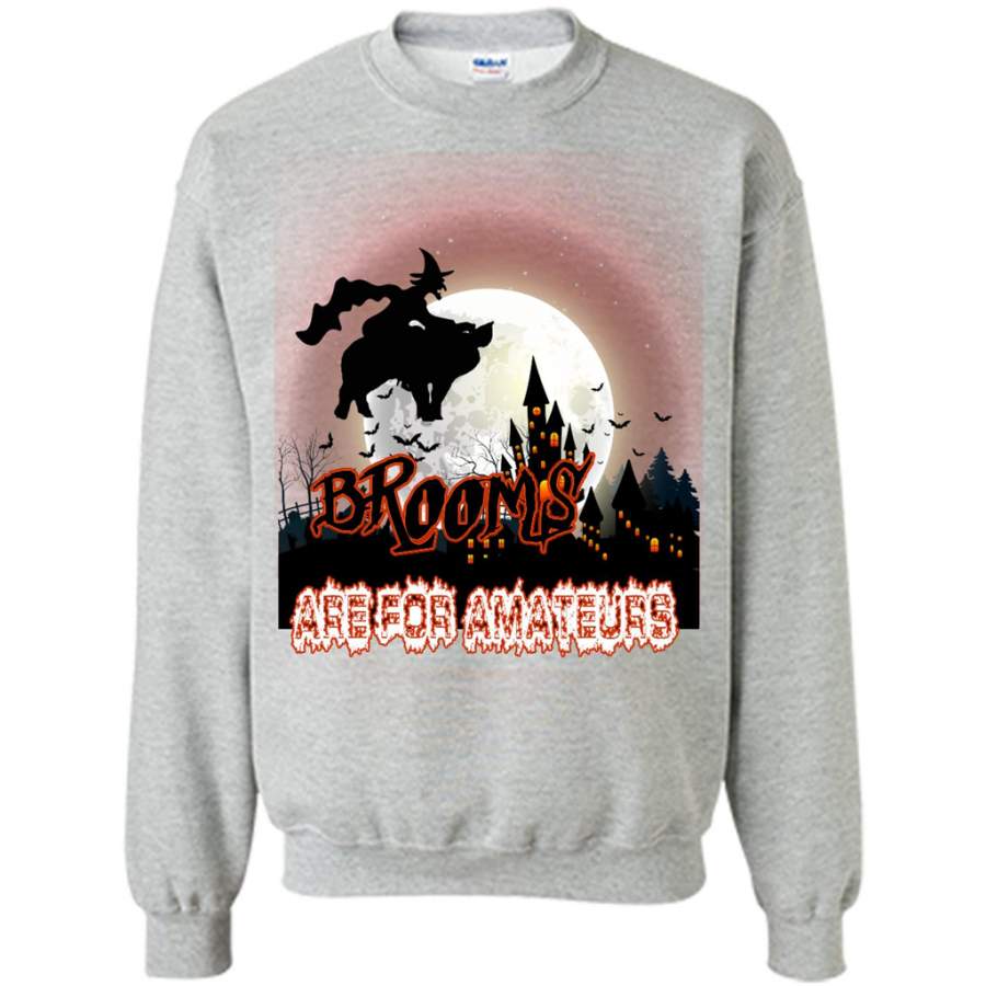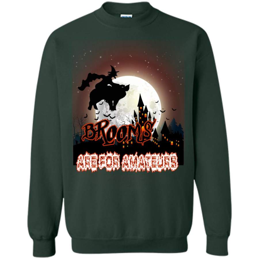 Brooms Are For Amateurs – Witch -Pig Lover – Halloween – Gildan Crewneck Sweatshirt
