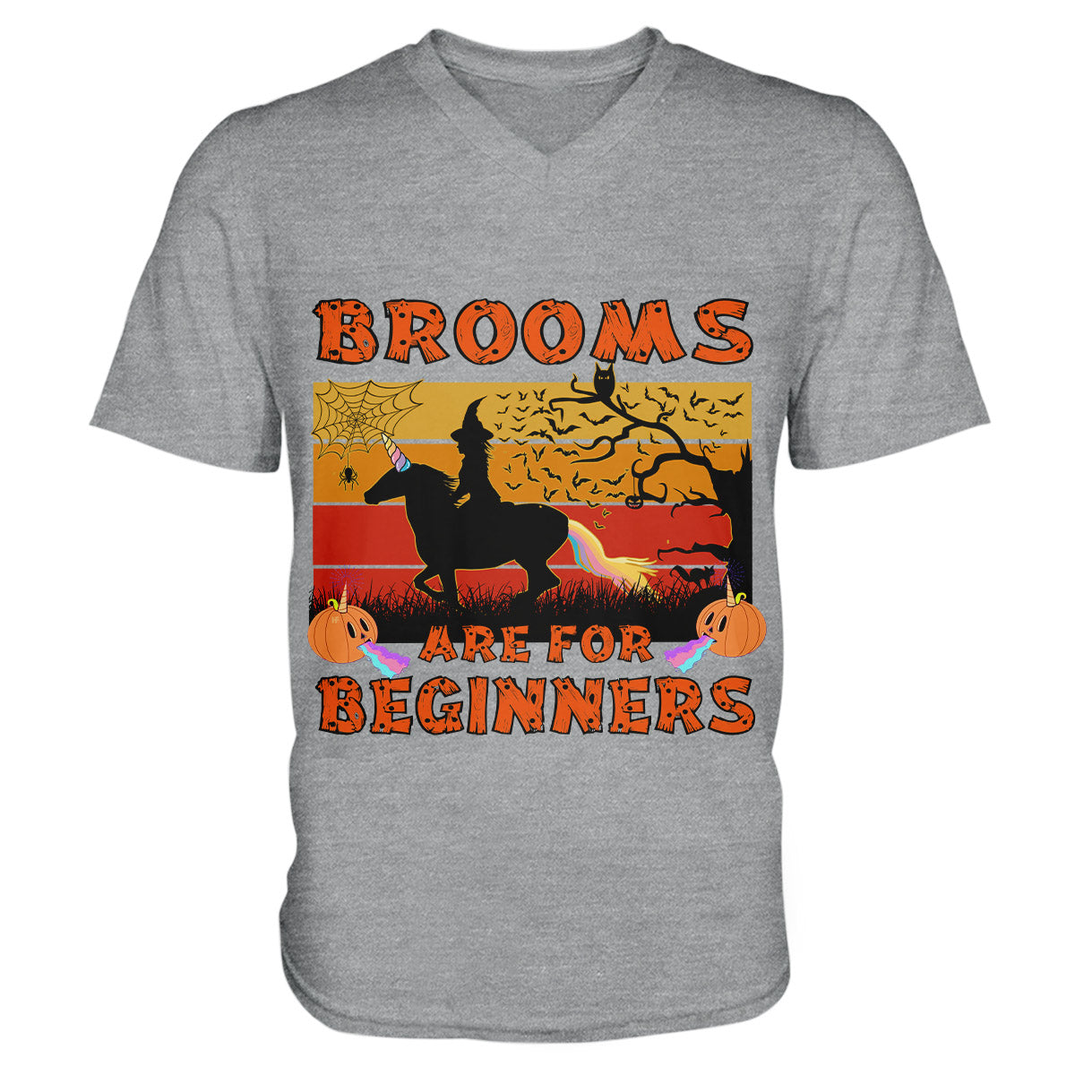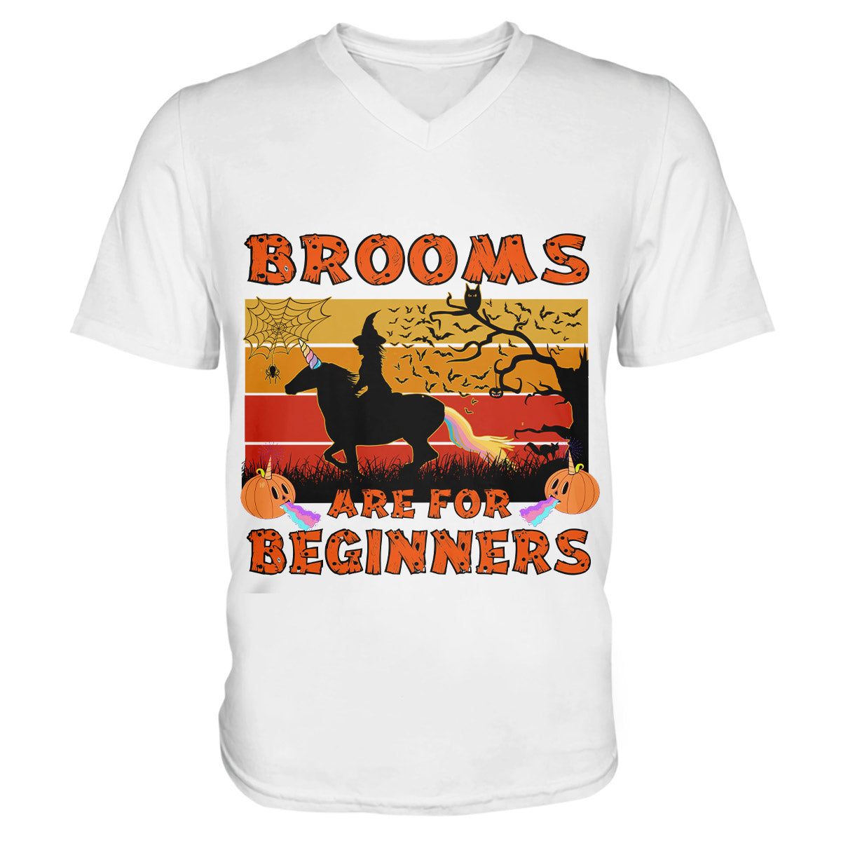 Brooms Are For Beginners Halloween Shirt, Unicorn Lover Unisex V-Neck T-Shirt