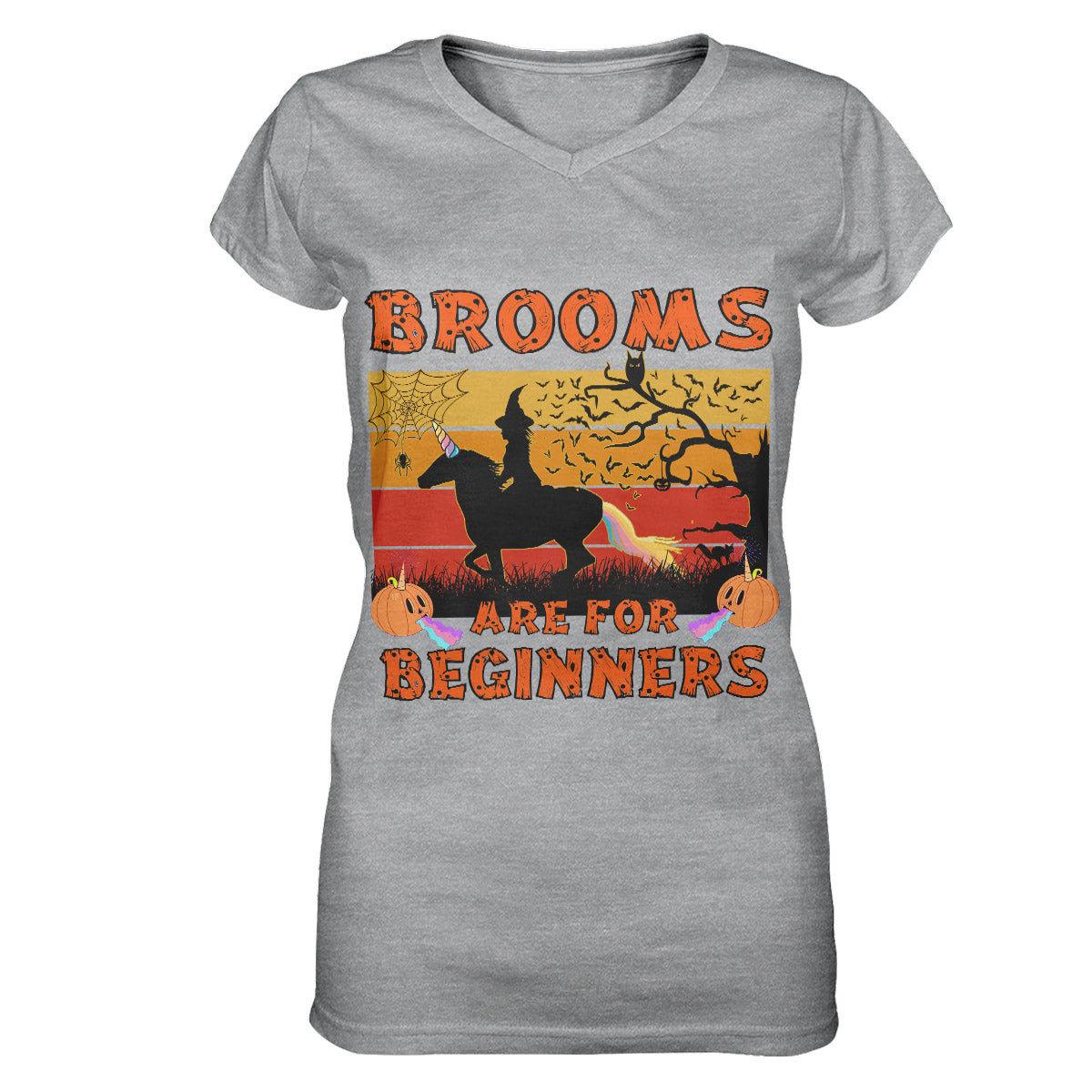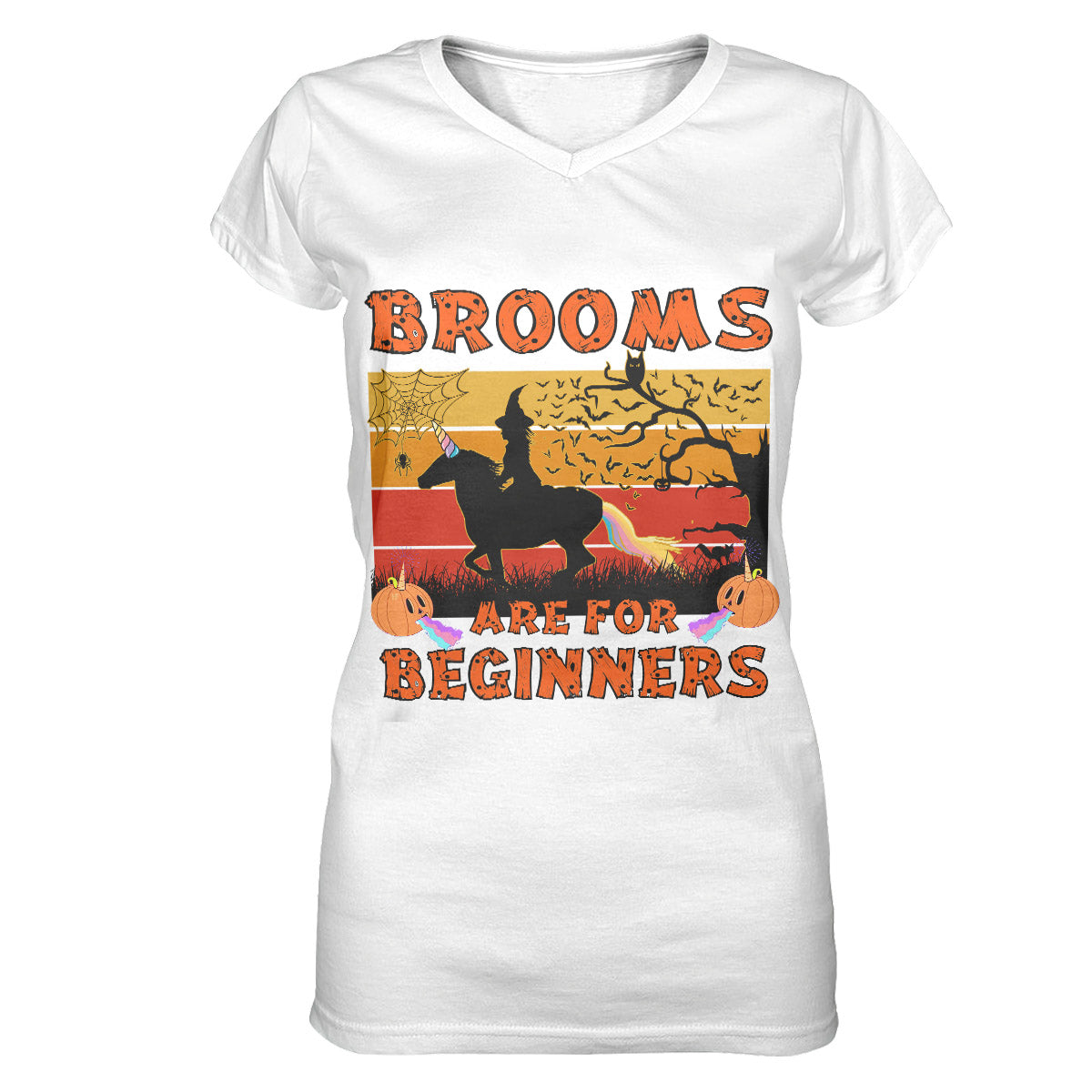 Brooms Are For Beginners Halloween Shirt, Unicorn Lover Women V-Neck T-Shirt