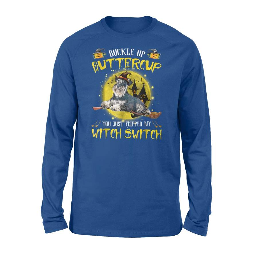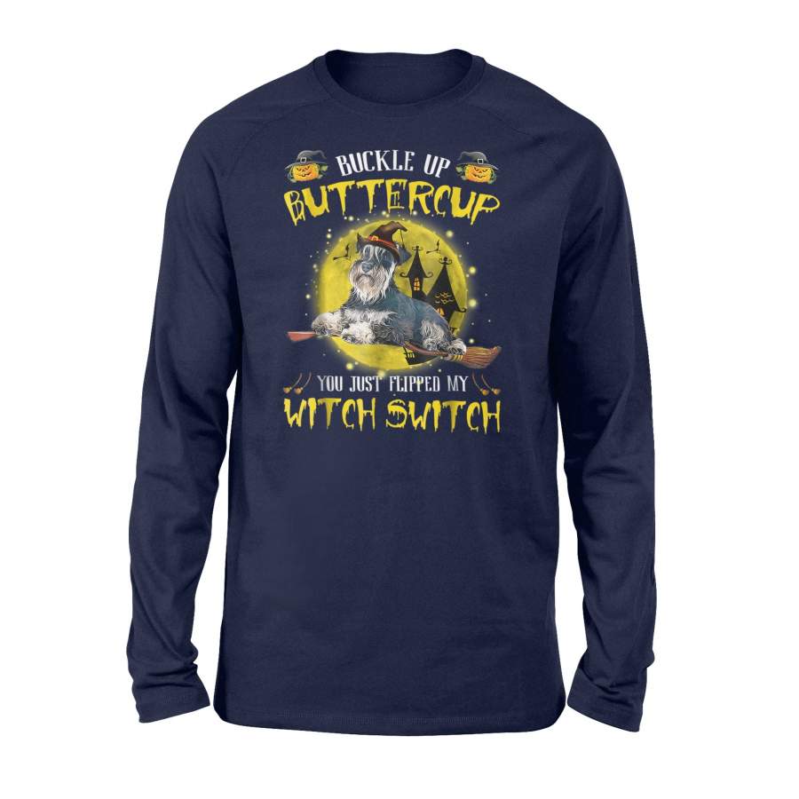 Buckle Up Buttercup – Schnauzer Halloween Long Sleeve T shirt