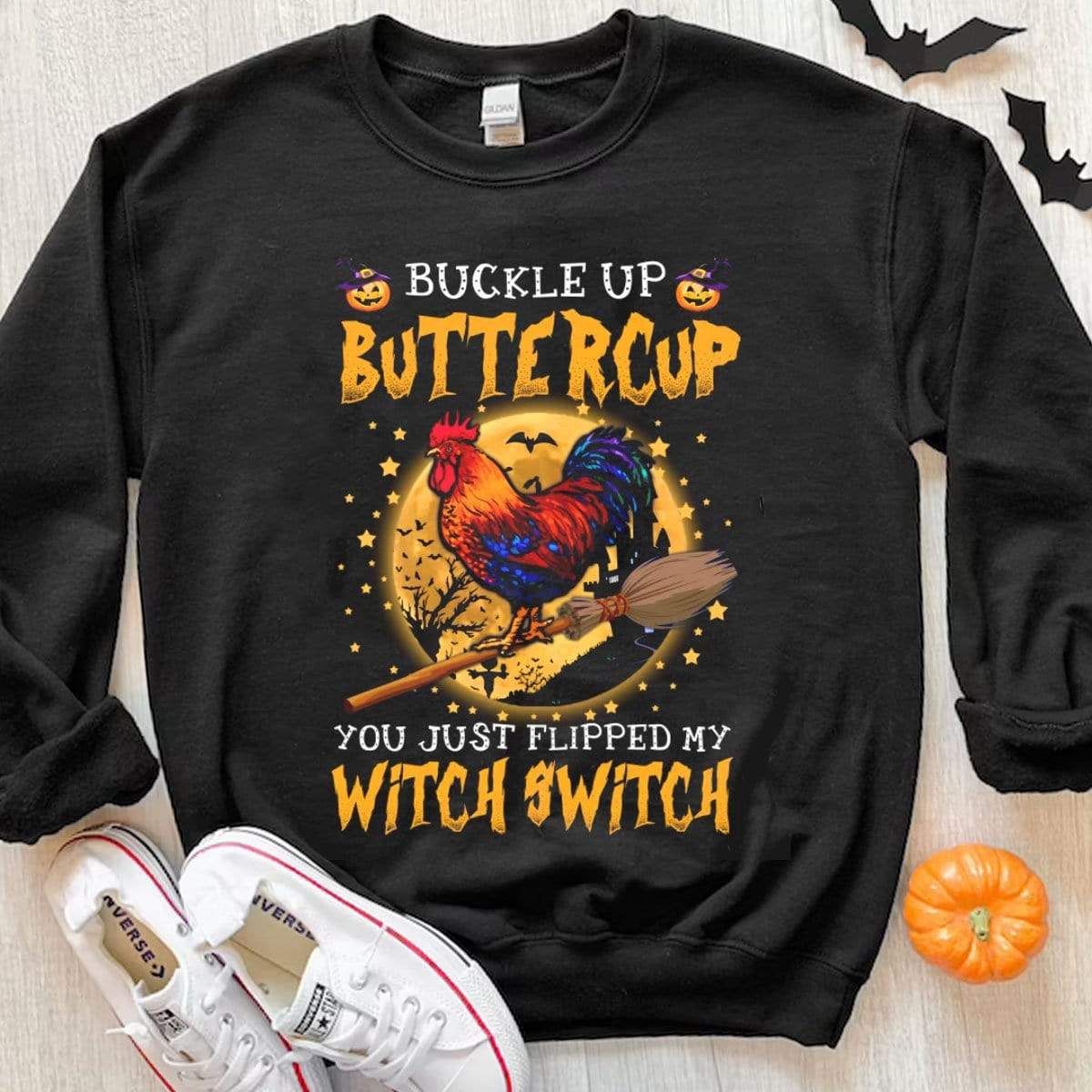 Buckle Up Buttercup You Just Flipped My Witch Switch Halloween Chicken Hoodie, Shirts