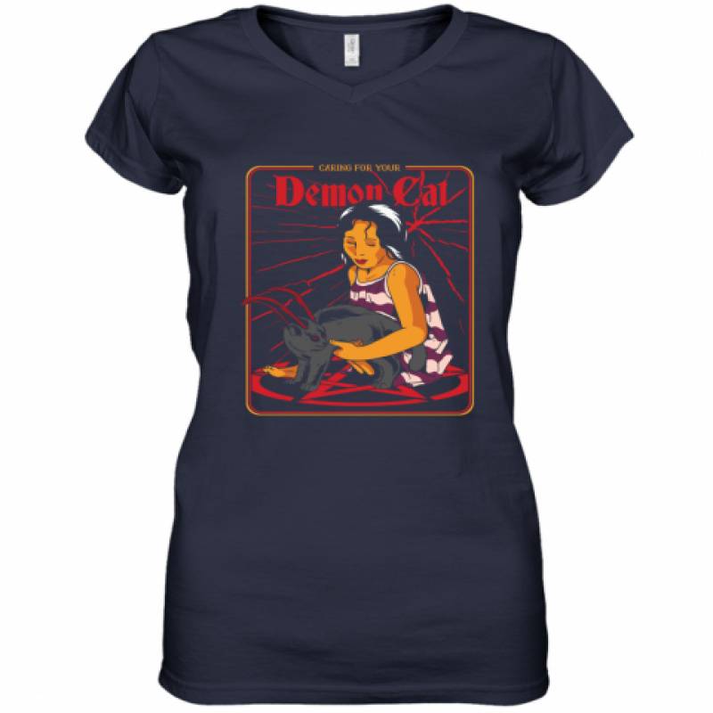 Caring For Your Demon Cat Halloween Costume for Cats Owners shirt Women's V-Neck T-Shirt