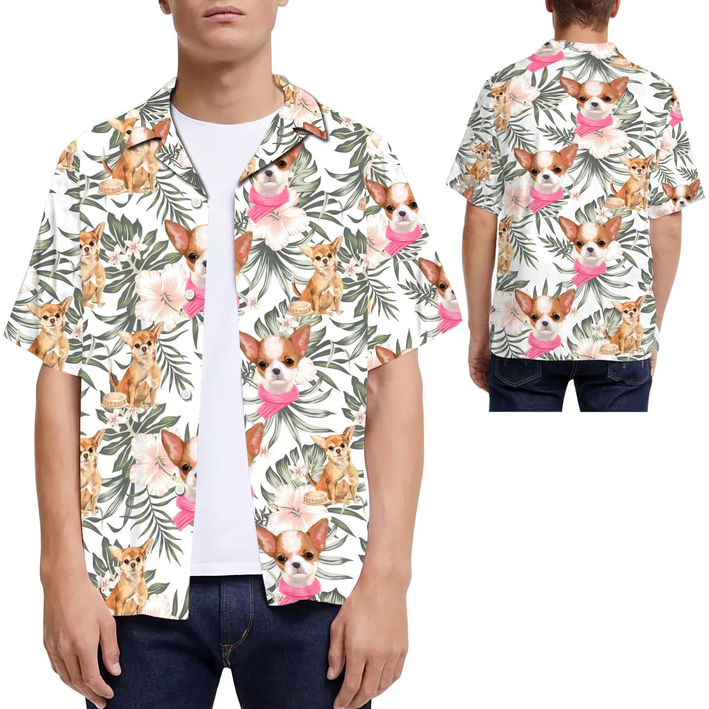 Chihuahua Tropical Leaves Hibiscus Men Hawaiian Shirt For Dog Lovers – Gift For Chihuahua Dog Lovers