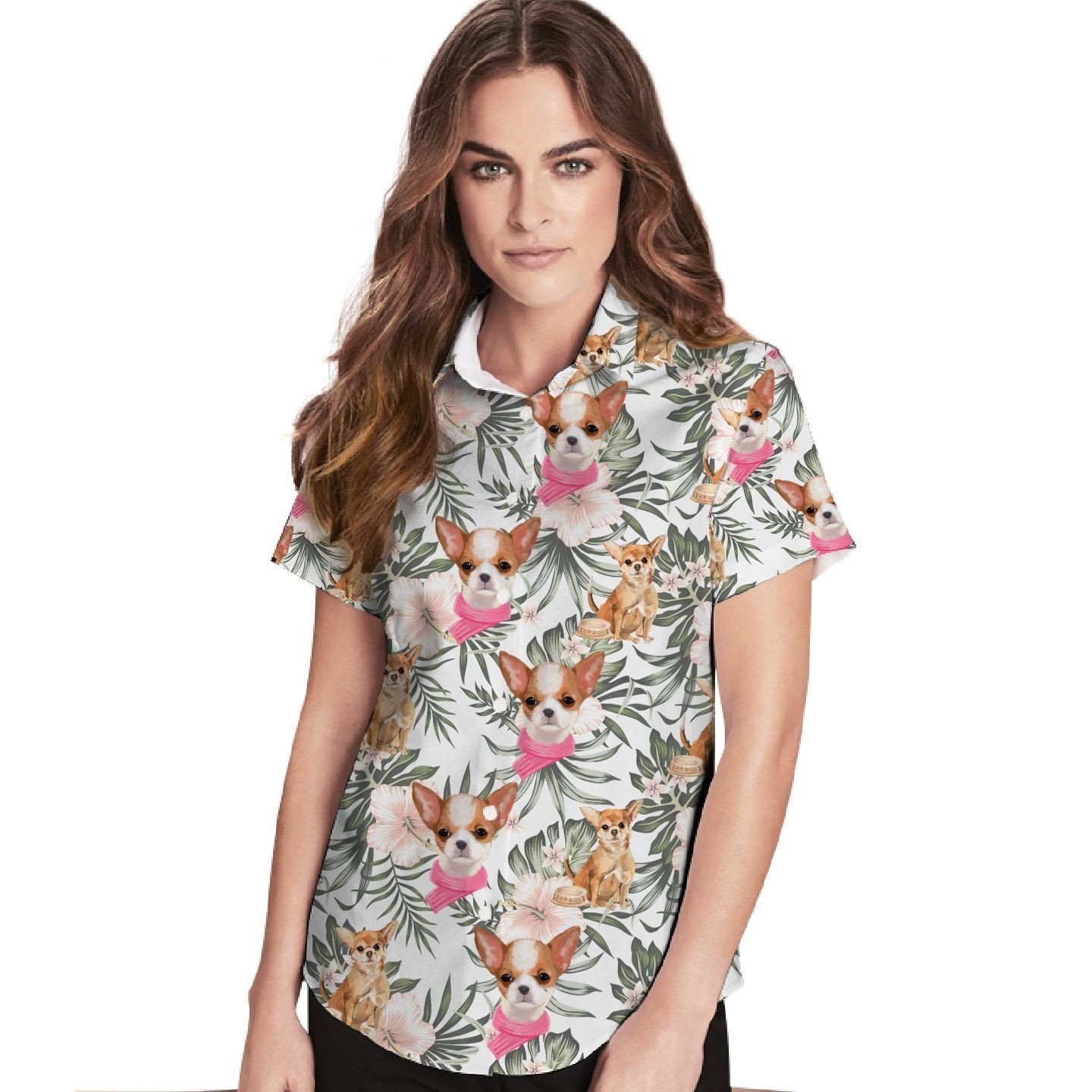 Chihuahua Tropical Leaves Hibiscus Women Hawaiian Shirt For Dog Lovers – Gift For Chihuahua Dog Lovers