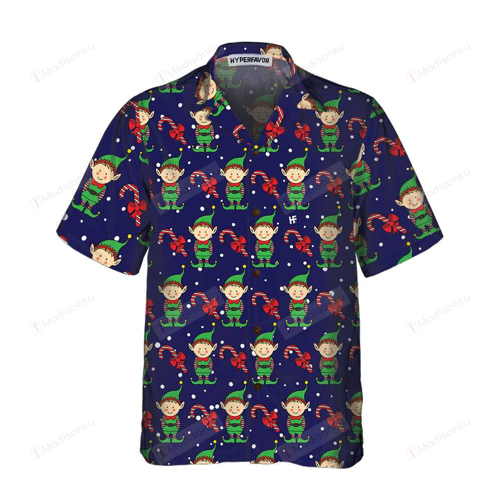 Christmas Elves On Blue Hawaiian Shirt
