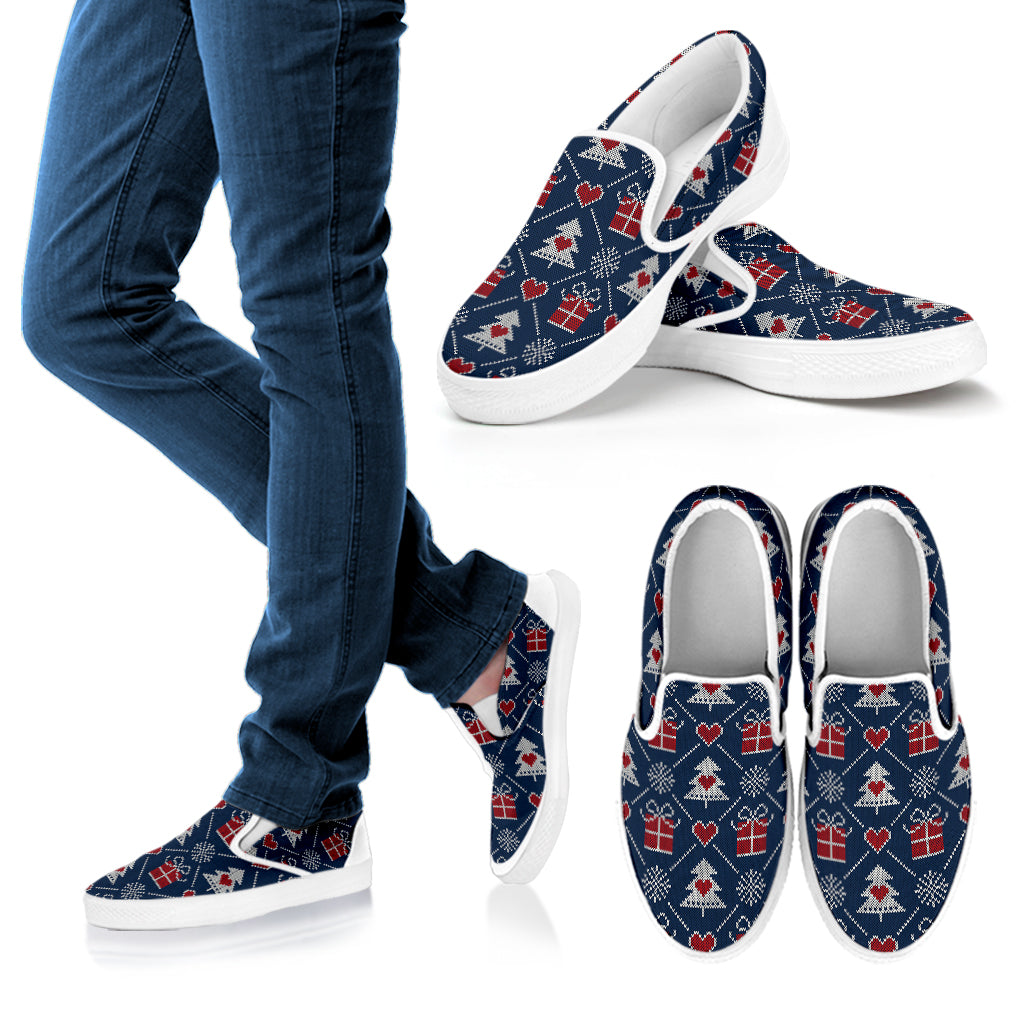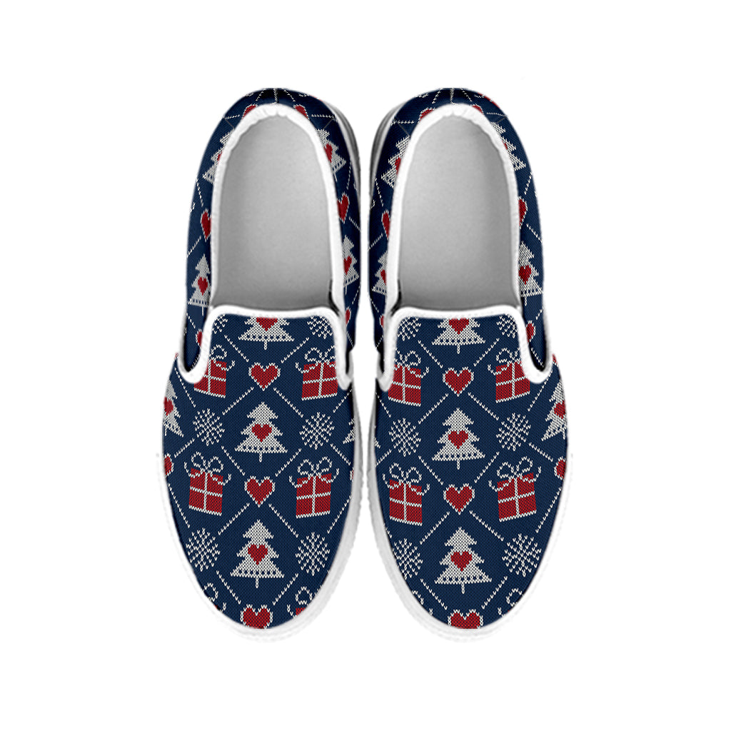 Christmas Gift Knitted Pattern Print White Slip On Shoes