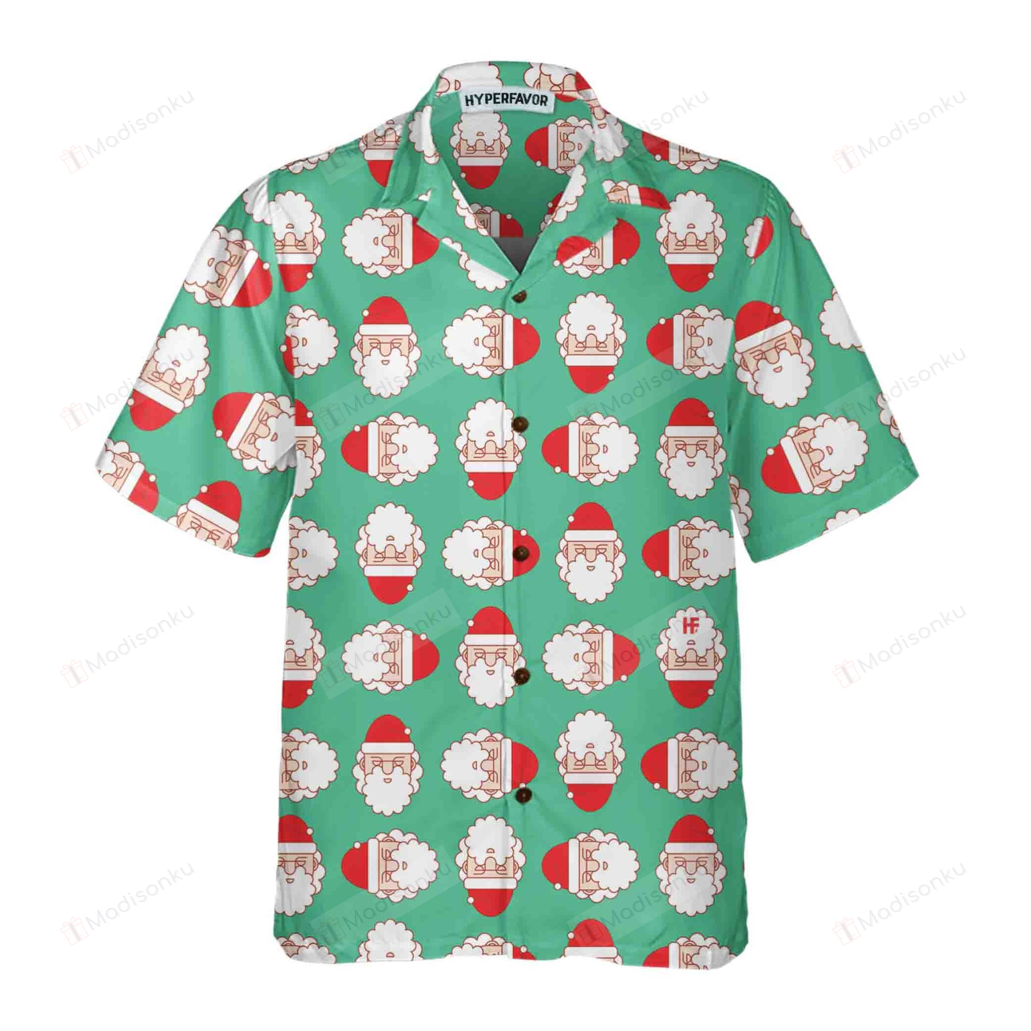 Christmas Santa Claus Face Seamless Pattern Hawaiian Shirt