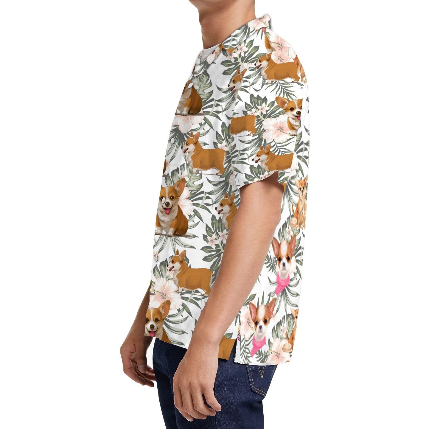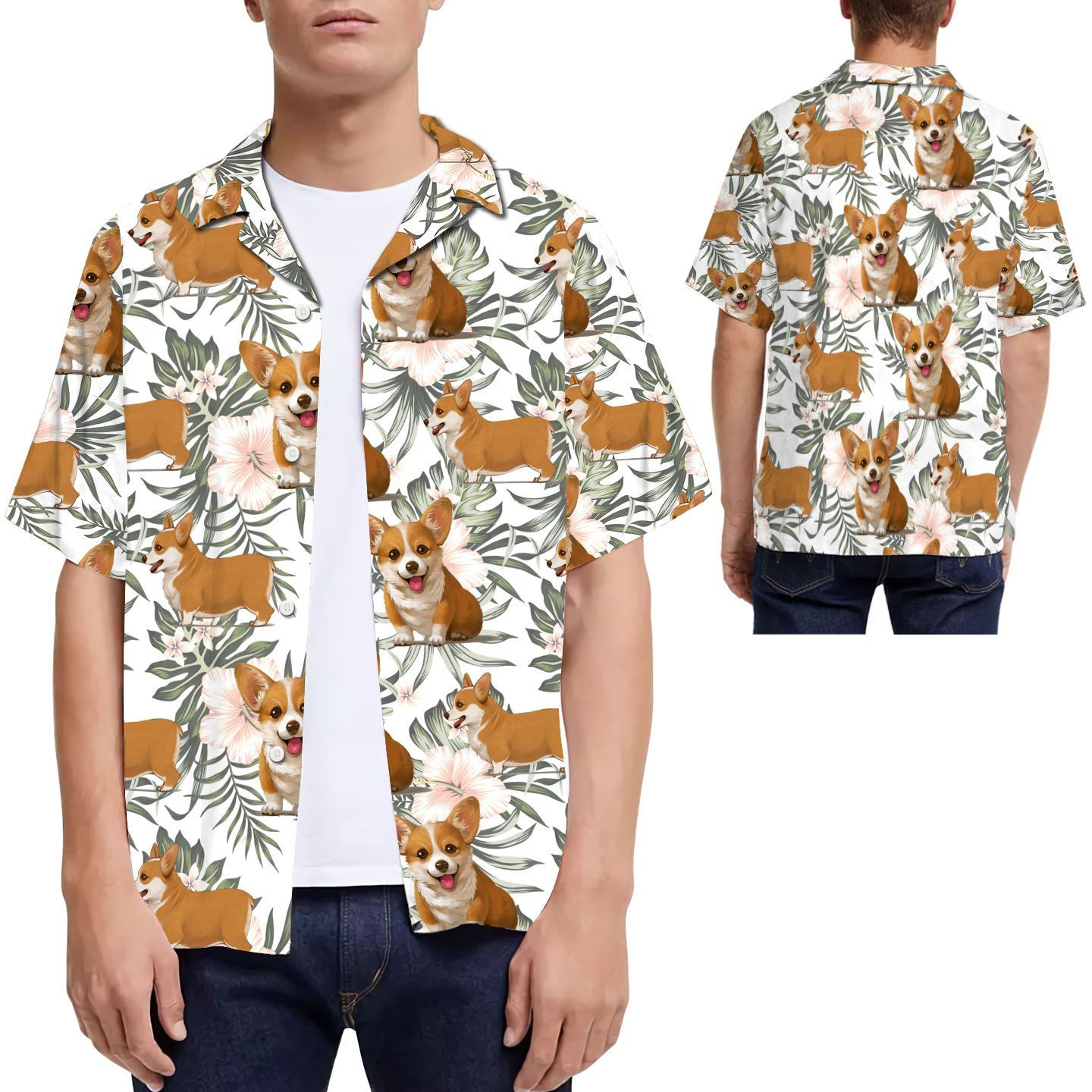 Corgi Tropical Leaves Hibiscus Men Hawaiian Shirt For Dog Lovers – Gift For Corgi Dog Lovers